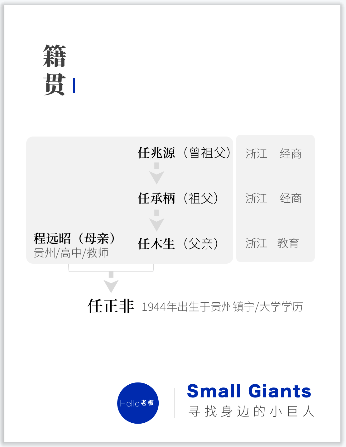 1944年,任木生仍然眷恋着浙江的故土,带着任正非母子二人回乡,而国民党特务也随着而来。任木生在国民党的工厂工作,而信奉的是共产党的信仰,他的言与行自然被背后的眼睛“盯上了”。也许是上天眷顾,特务却抓错了人,而任木生再次折返贵州,自此在贵州这片土地扎下了根。