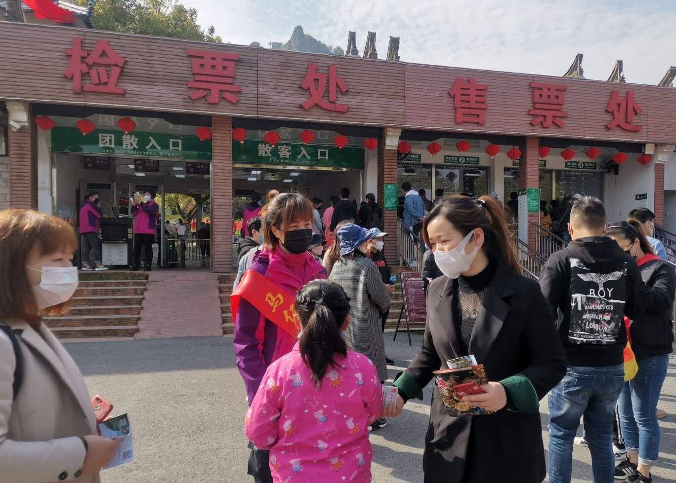 游客管理管理方面,首先是购票管理:实施网上实名预约和线下扫码支付非接触式购票。团队购票人员实行分时预约进景区。其次是入园前管理:进入景区前,须出示手机信号出现的区域并测体温、戴口罩,安检后凭票进园。进园人员排队间隔不少于1.5米。游客进入景区必须佩戴口罩,对于未佩戴口罩人员景区将劝阻进入。团队游客分时段、间隔性进入景区,团队游客不超过30人,避免集中进入景区。景区工作人员进行疏导和禁止人员聚集。