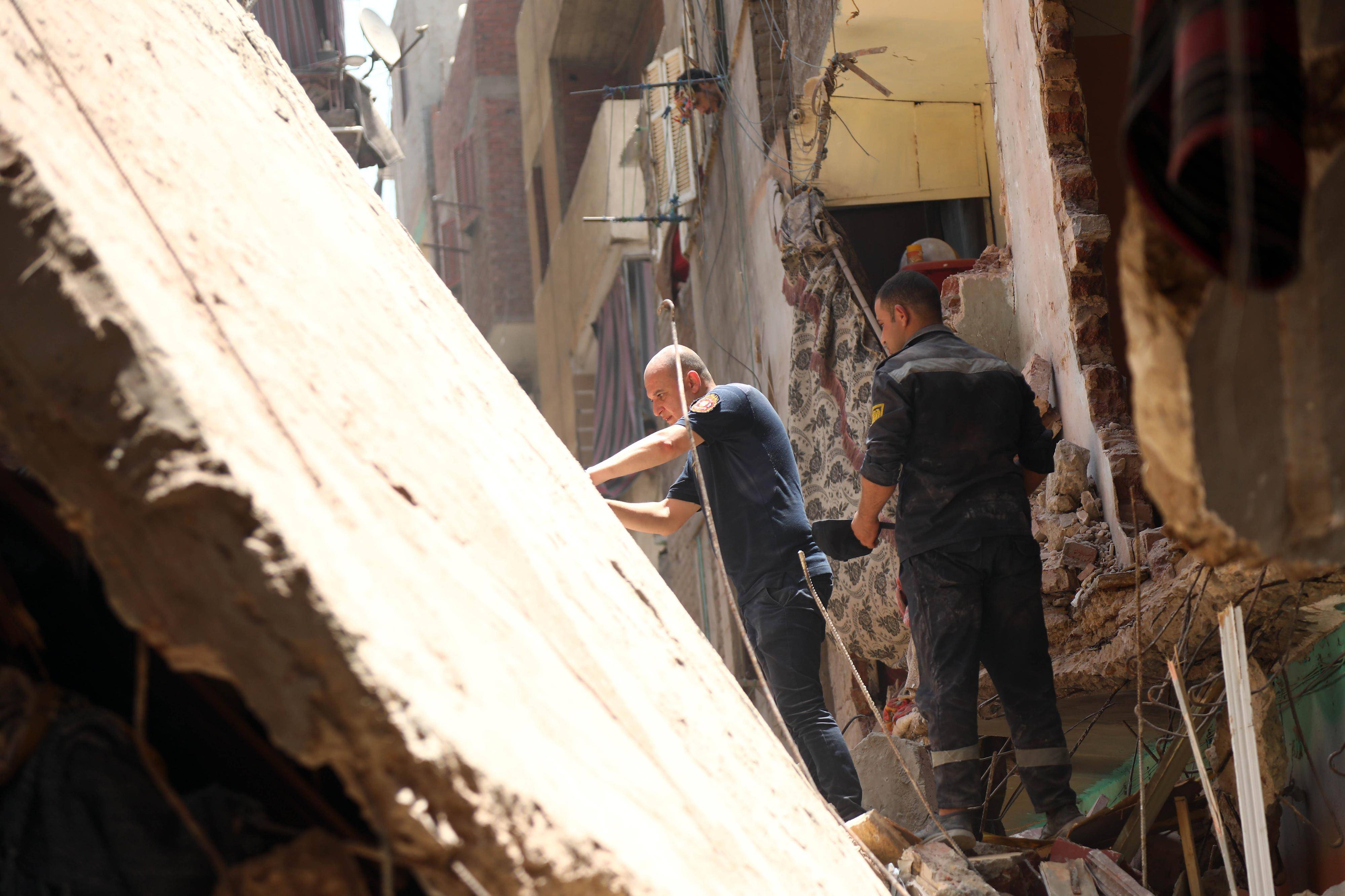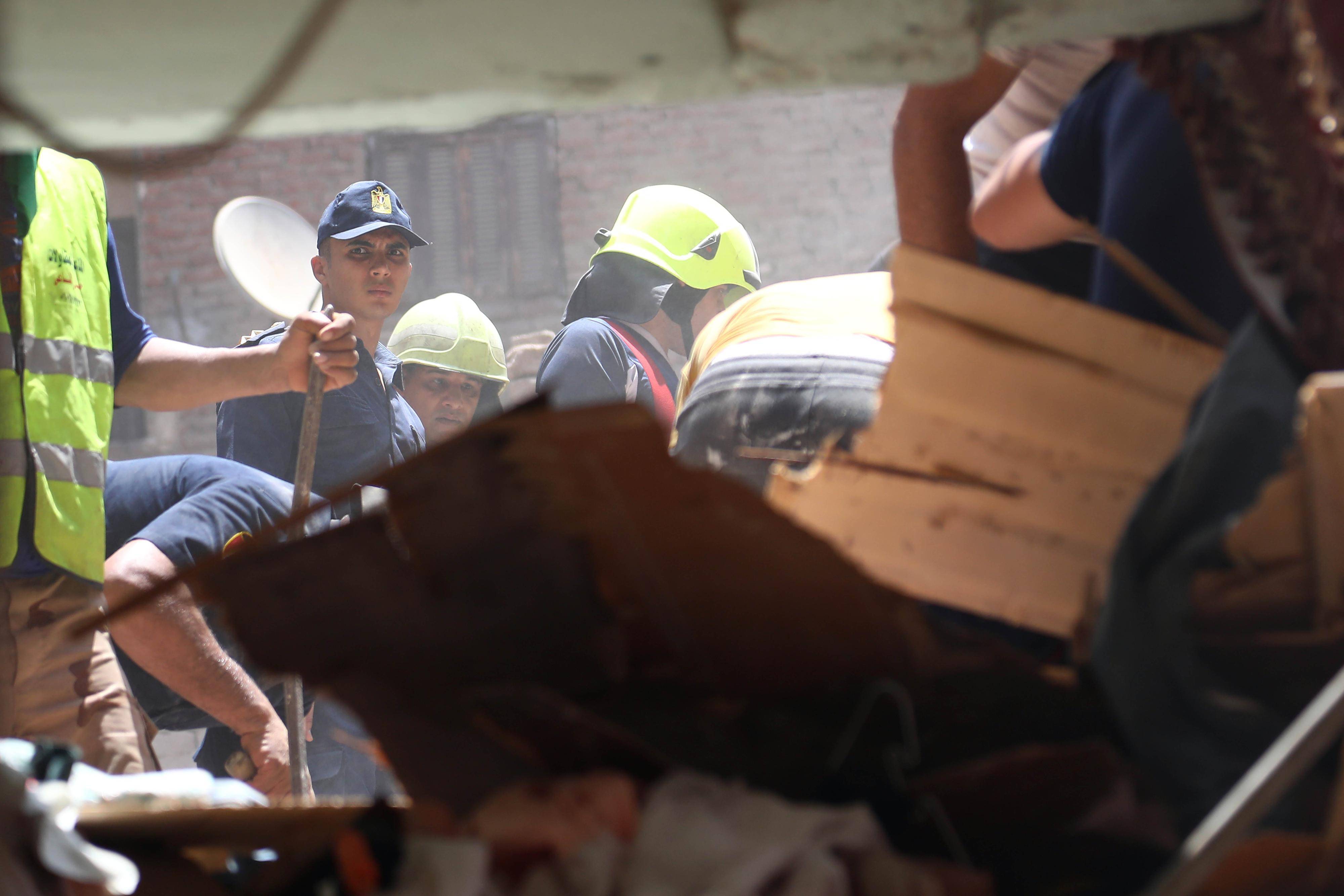 7月17日,救援人员在埃及首都开罗的居民楼坍塌现场工作。 新华社发(艾哈迈德·戈马摄)