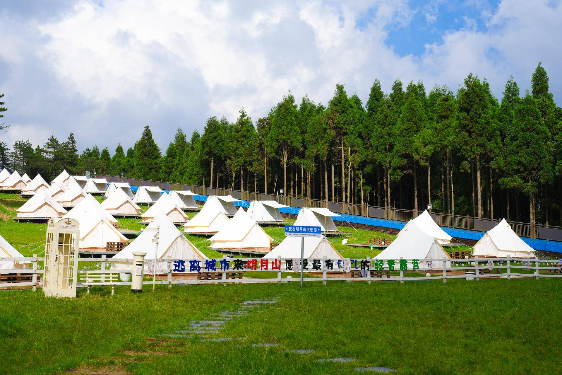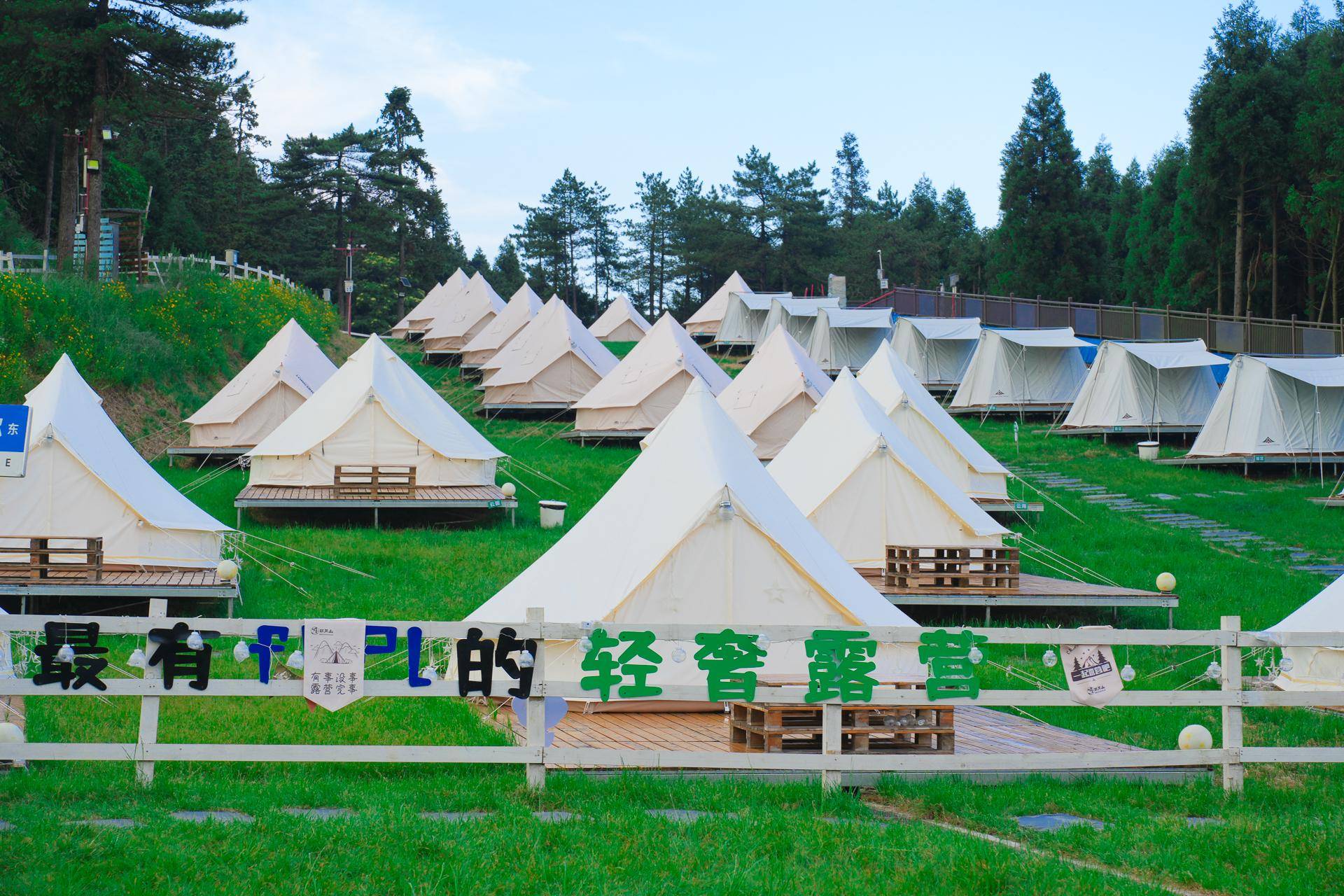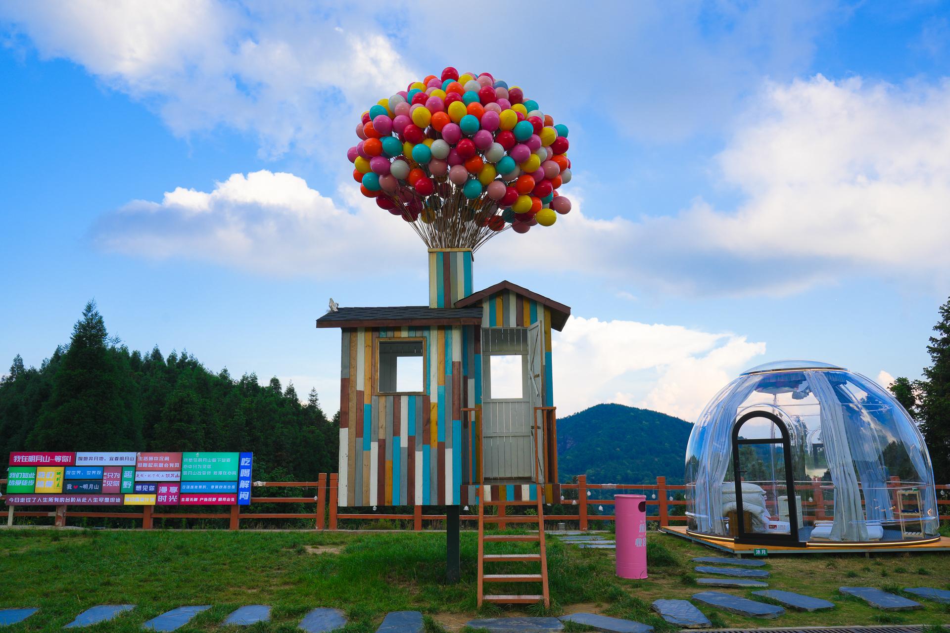 露营地设有丰富的趣味打卡点比如:梦想飞屋、爱心小熊、浪漫天幕、想你路牌、云朵秋千、时光电话亭。一盏营地灯,一把折叠椅帐篷露营的独特氛围感也很出片怎么拍都好看哦。你要是有住在这里的话,建议带带几套衣服,可以随便一拍就出大片呀。当然了,山顶平均温度为22℃,建议携带长衣长裤以及防风外套。傍晚的时候会比较凉快。