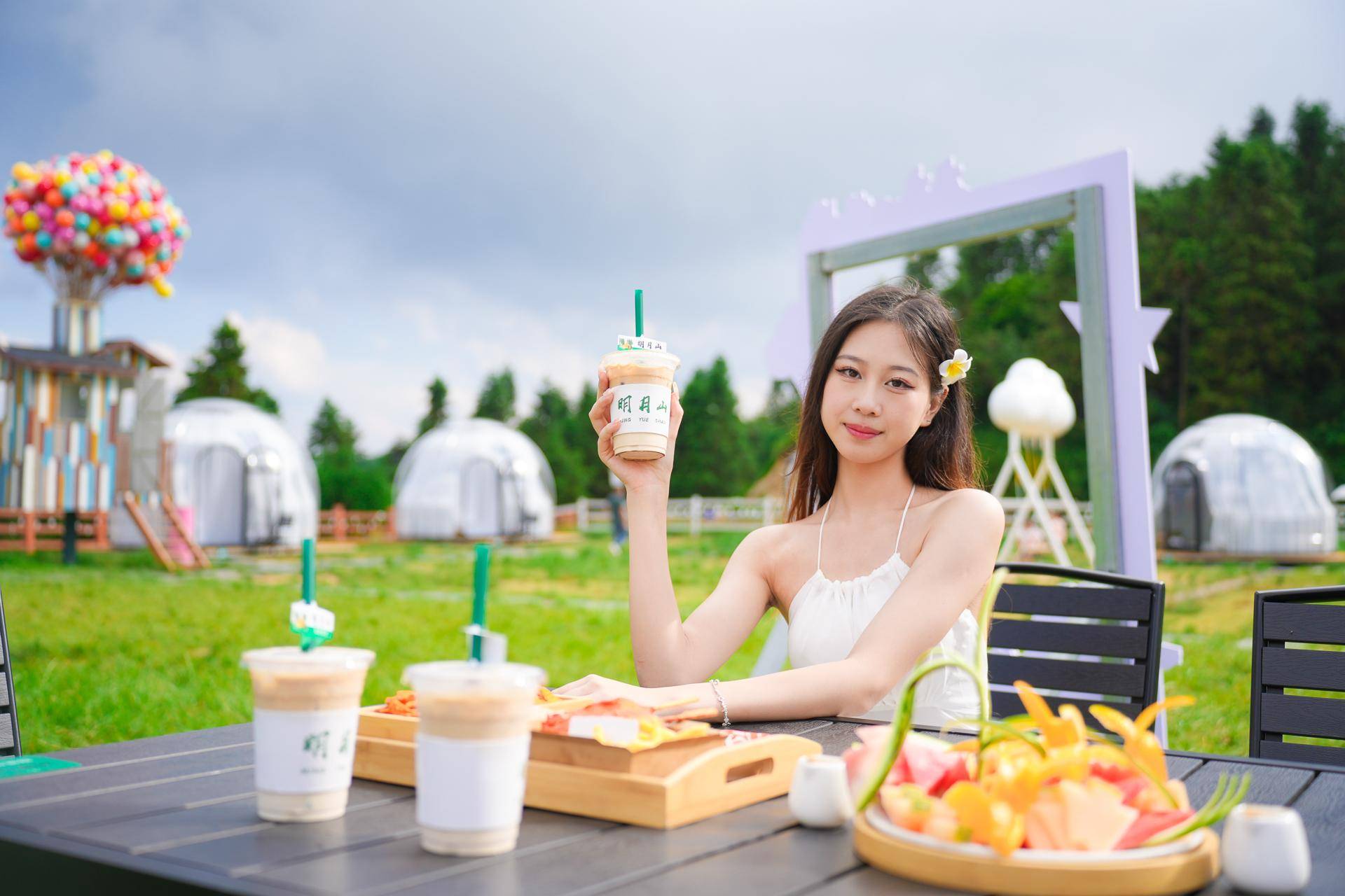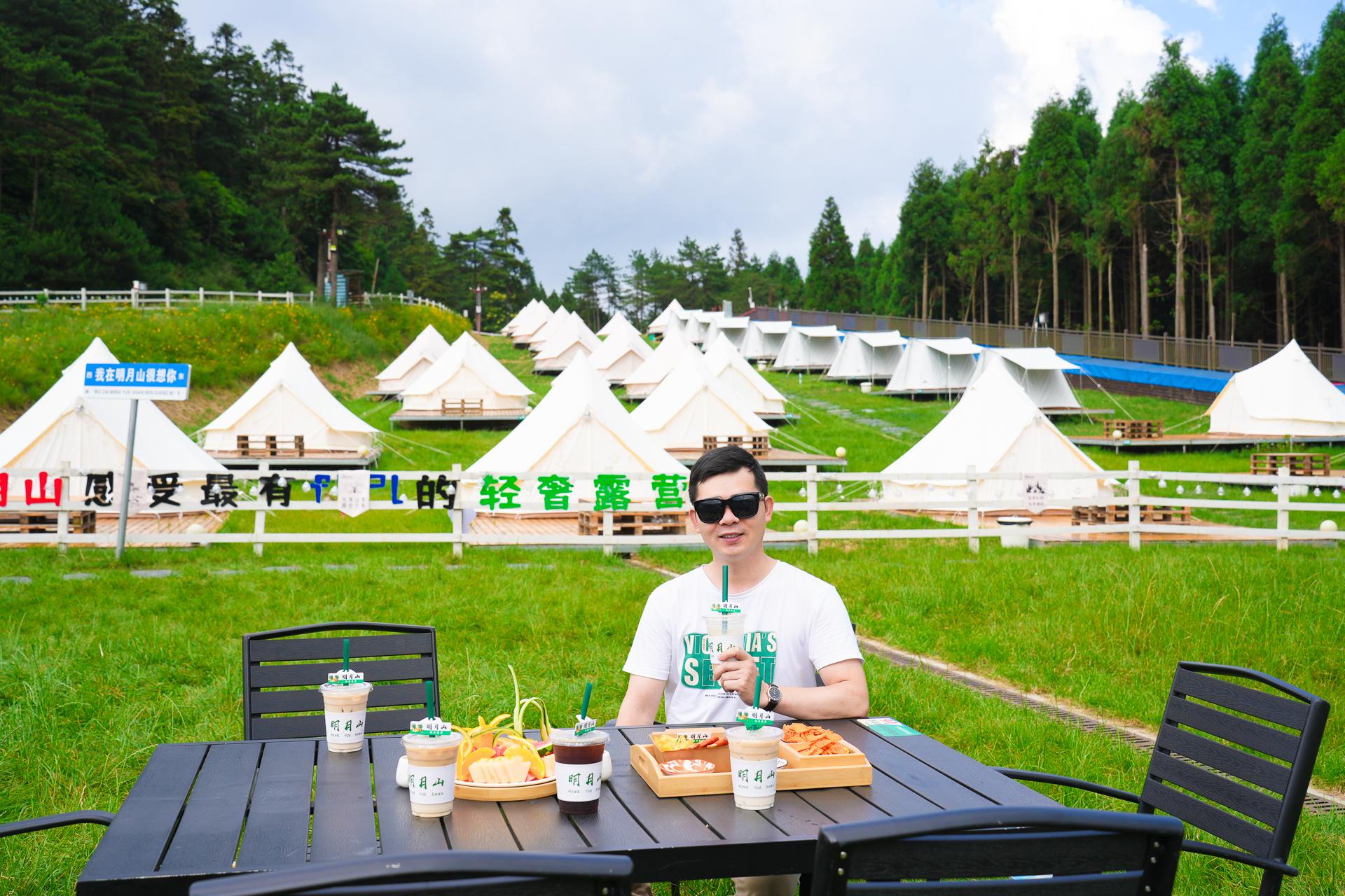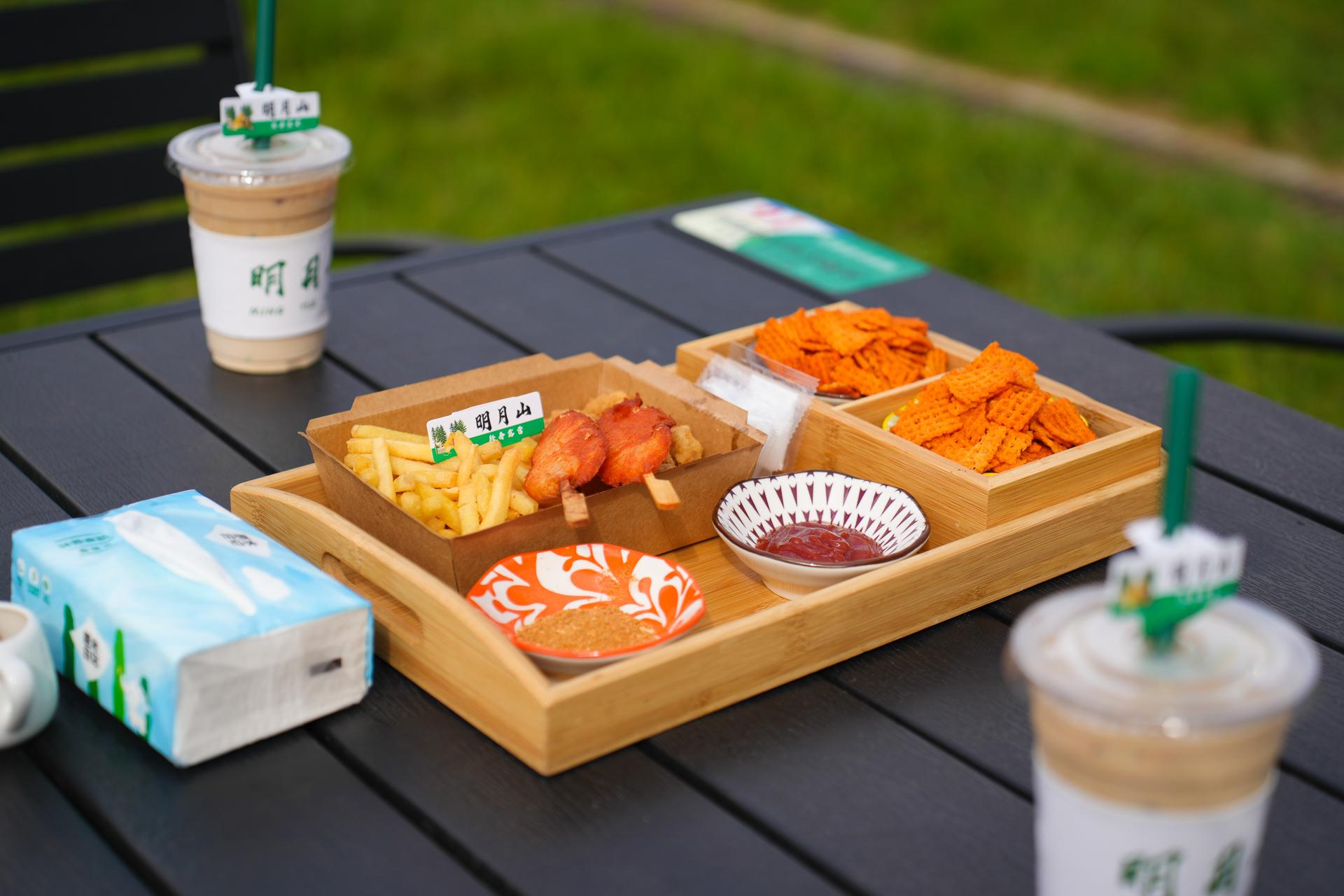 绿草青青,白云悠悠,坐在秋千上,看云卷云舒。玩累了,不如来明月山露营餐吧吃点美食。坐草地的座椅上和朋友一起享受精致下午茶、咖啡、奶茶、甜品、水果拼盘感受被大自然包围的浪漫。还可以在营地租卡式炉和餐具,自己动手,举杯共饮和朋友们来一场欢乐烧烤趴、火锅趴。