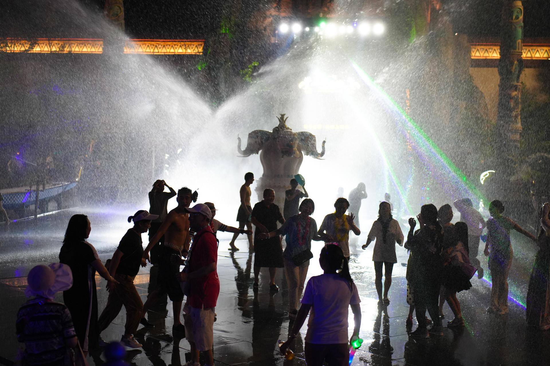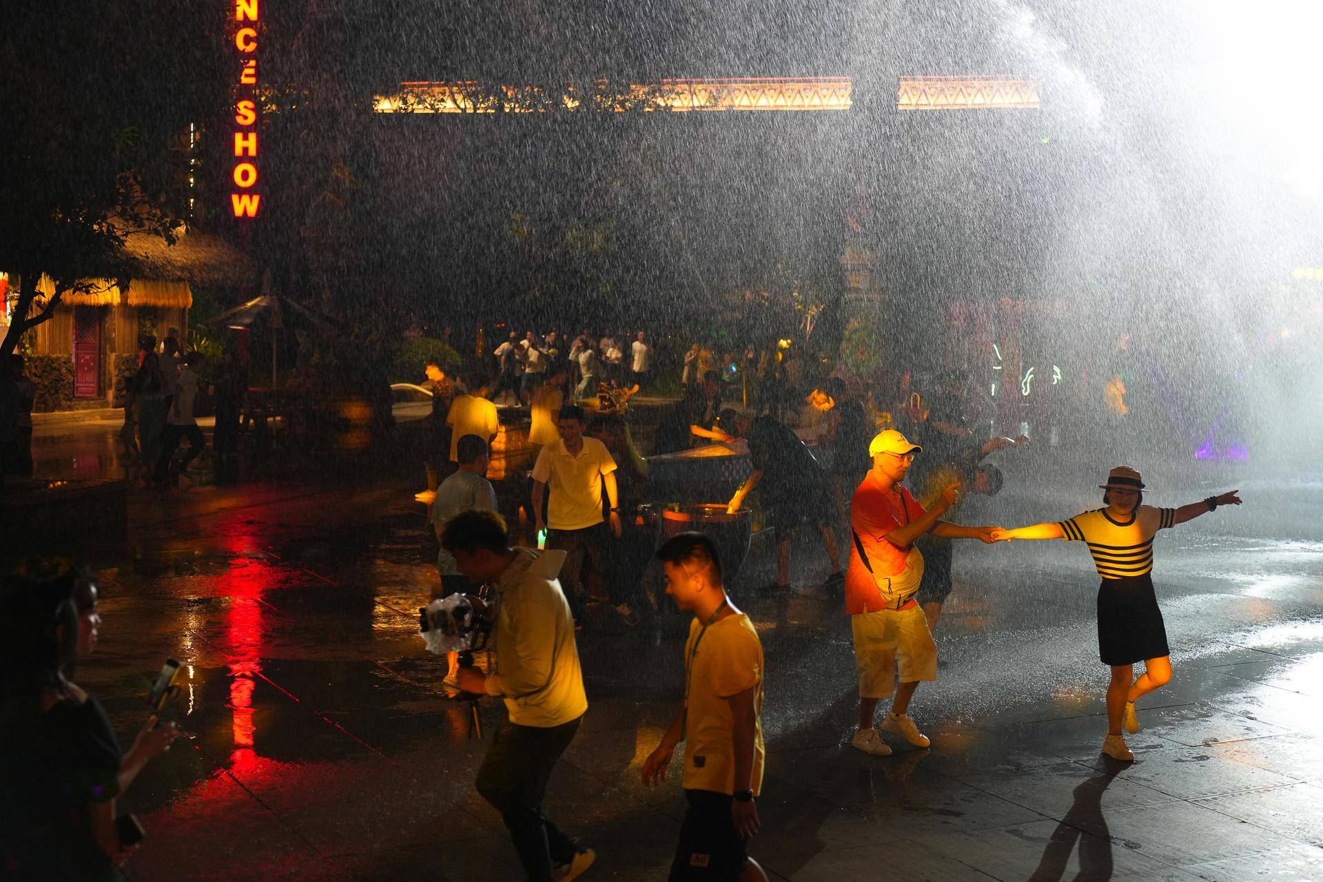 炎炎夏日当然要玩水了,接着来到千古情广场,一场傣族泼水狂欢上演,游客在互相泼水,玩水,也有在“雨中“跳舞,跟着音乐大家都嗨起来了。这个夏天就来明月千古情狂欢吧。