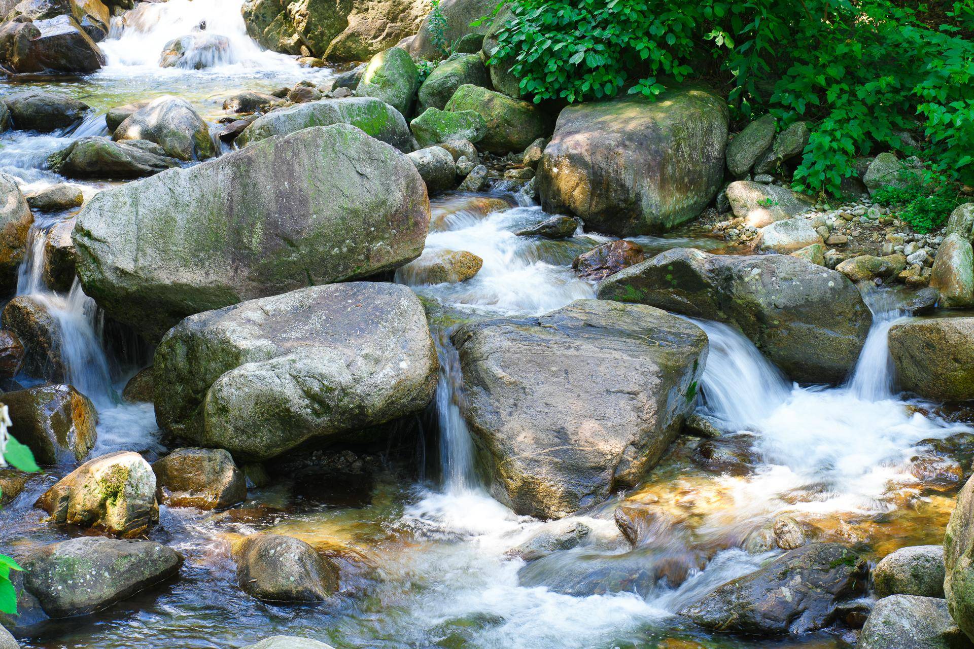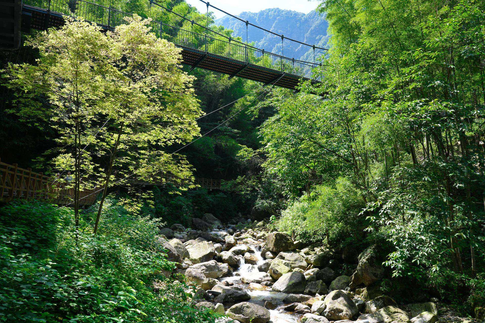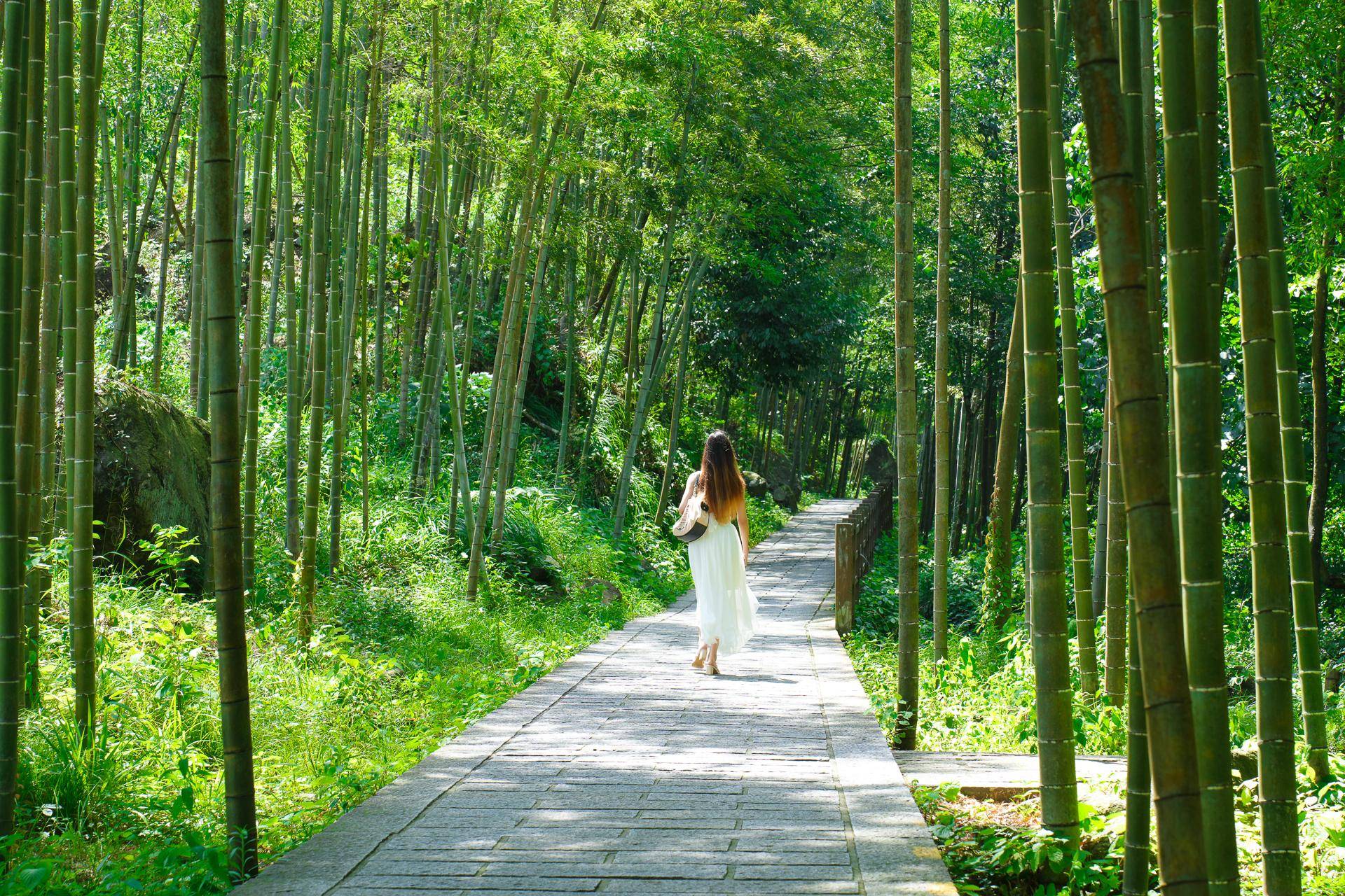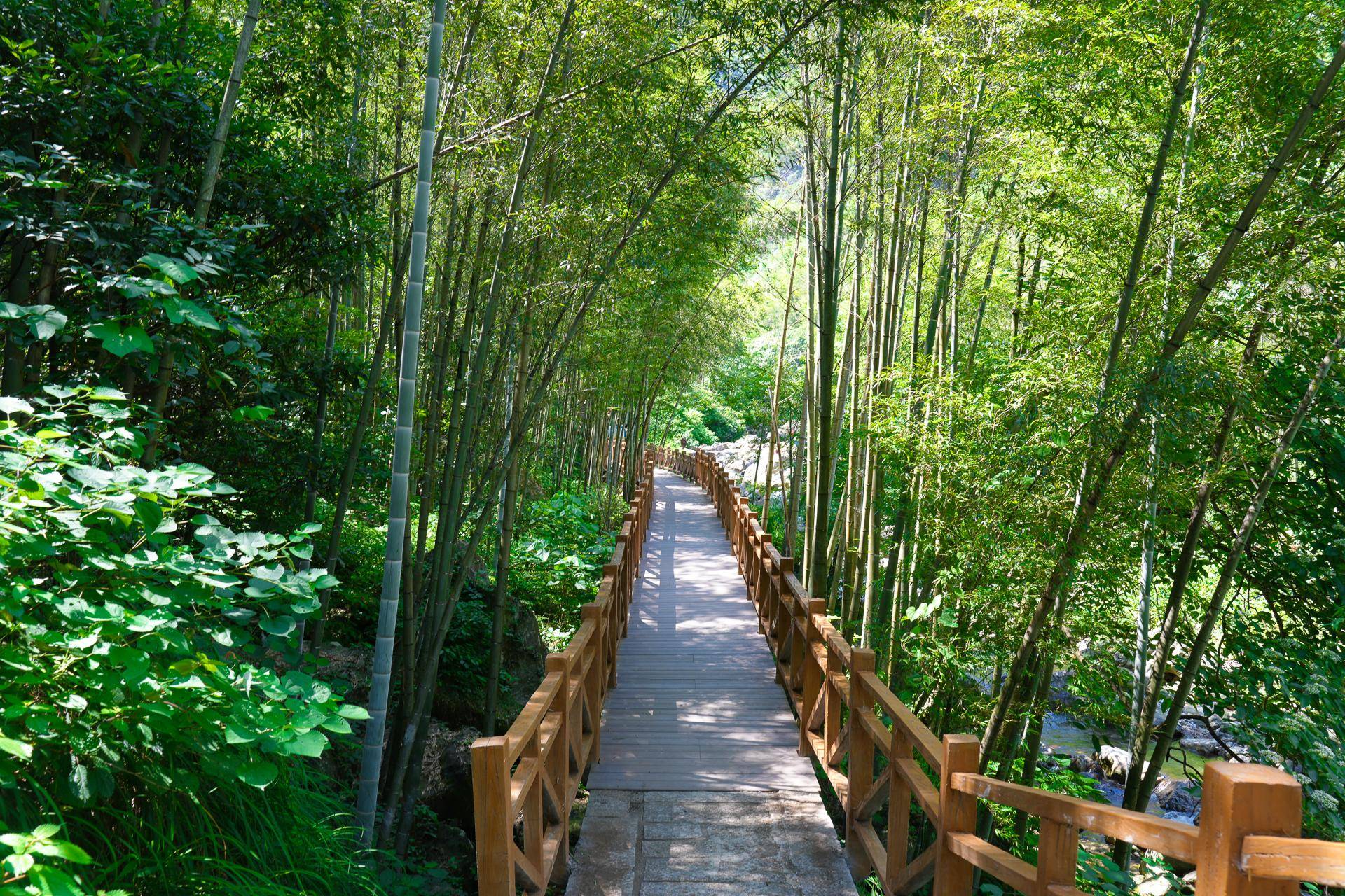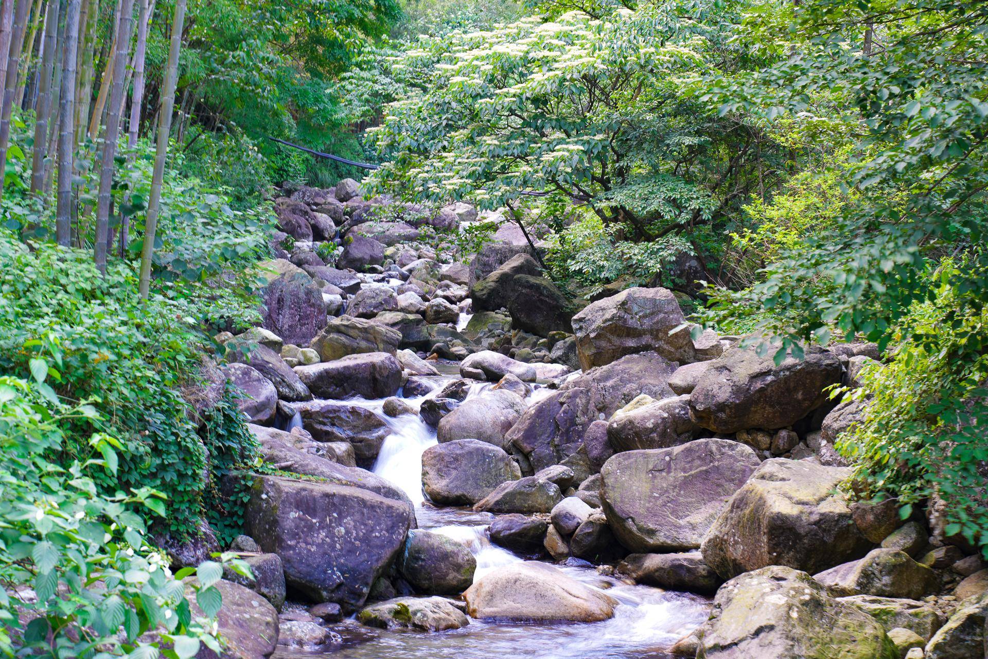 沿途的景色很美,绿树环绕,小路边溪水潺潺,景色优美。