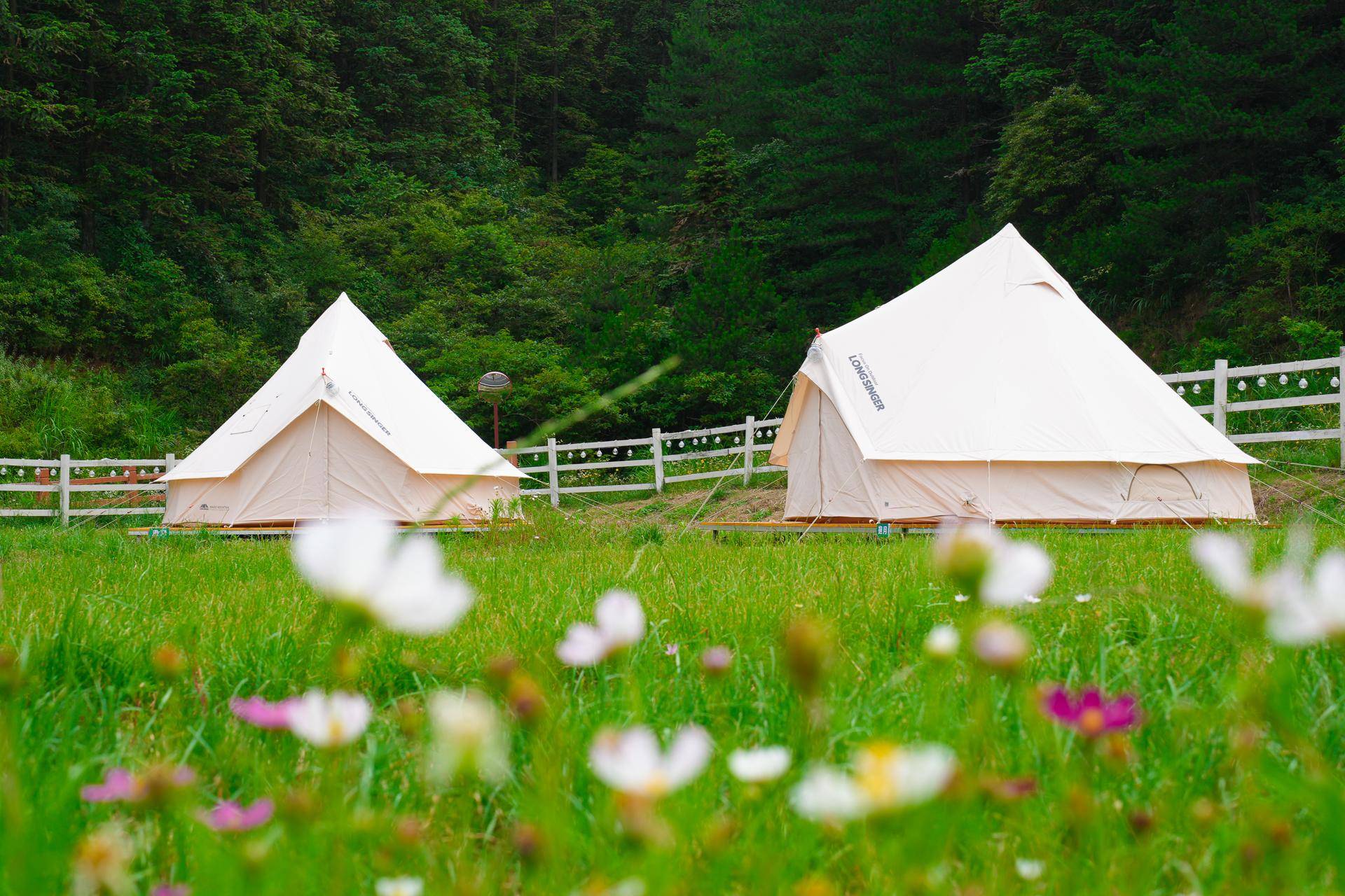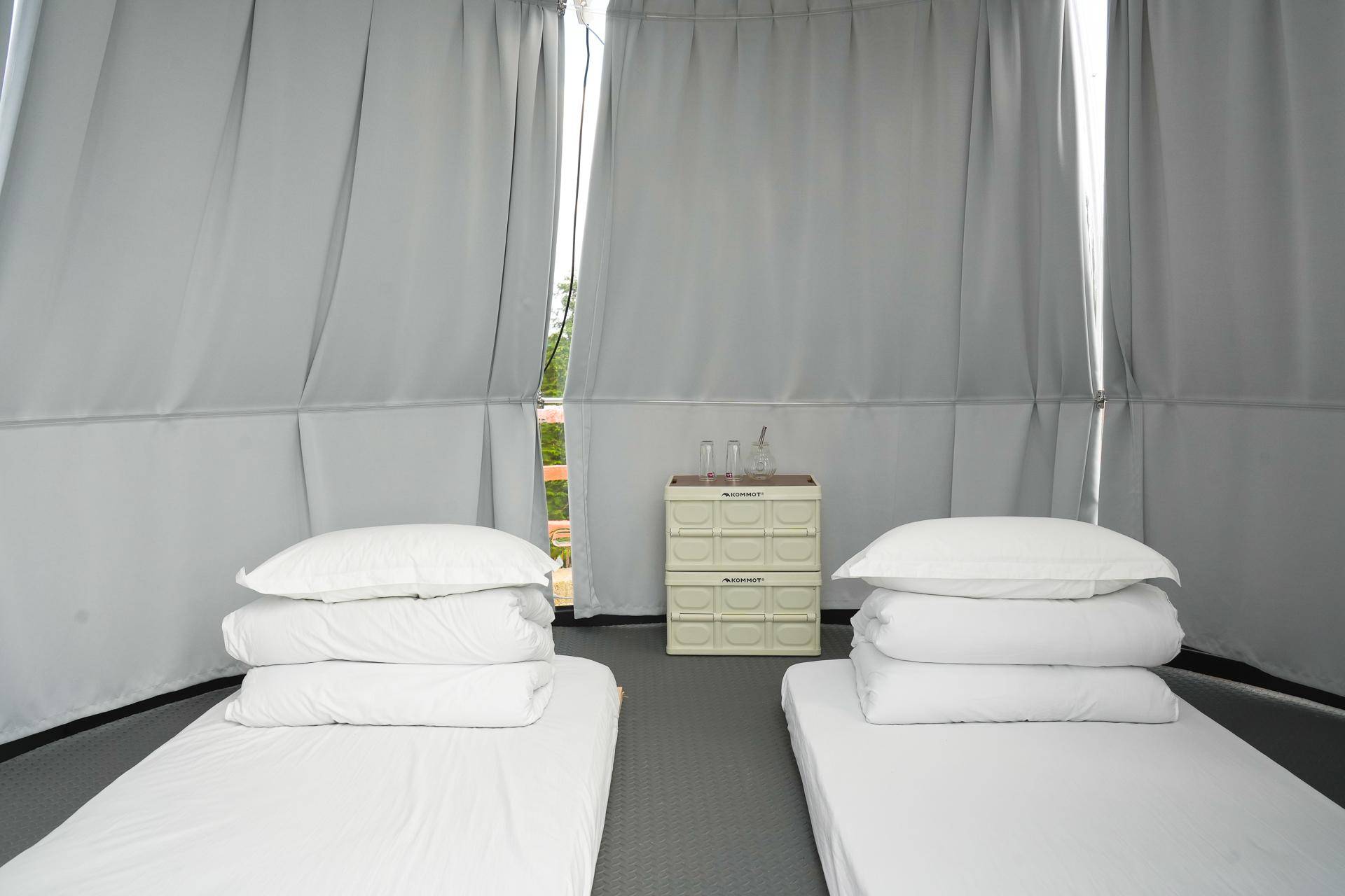 每一顶帐篷都设有单独的木质露台,给予每一位露营者浪漫而私密的空间,每个帐篷内还备好了营灯、乳胶床垫以及一次性三件套。营地还有室内淋浴间、卫生间,使用起来还是挺方便的哦。
