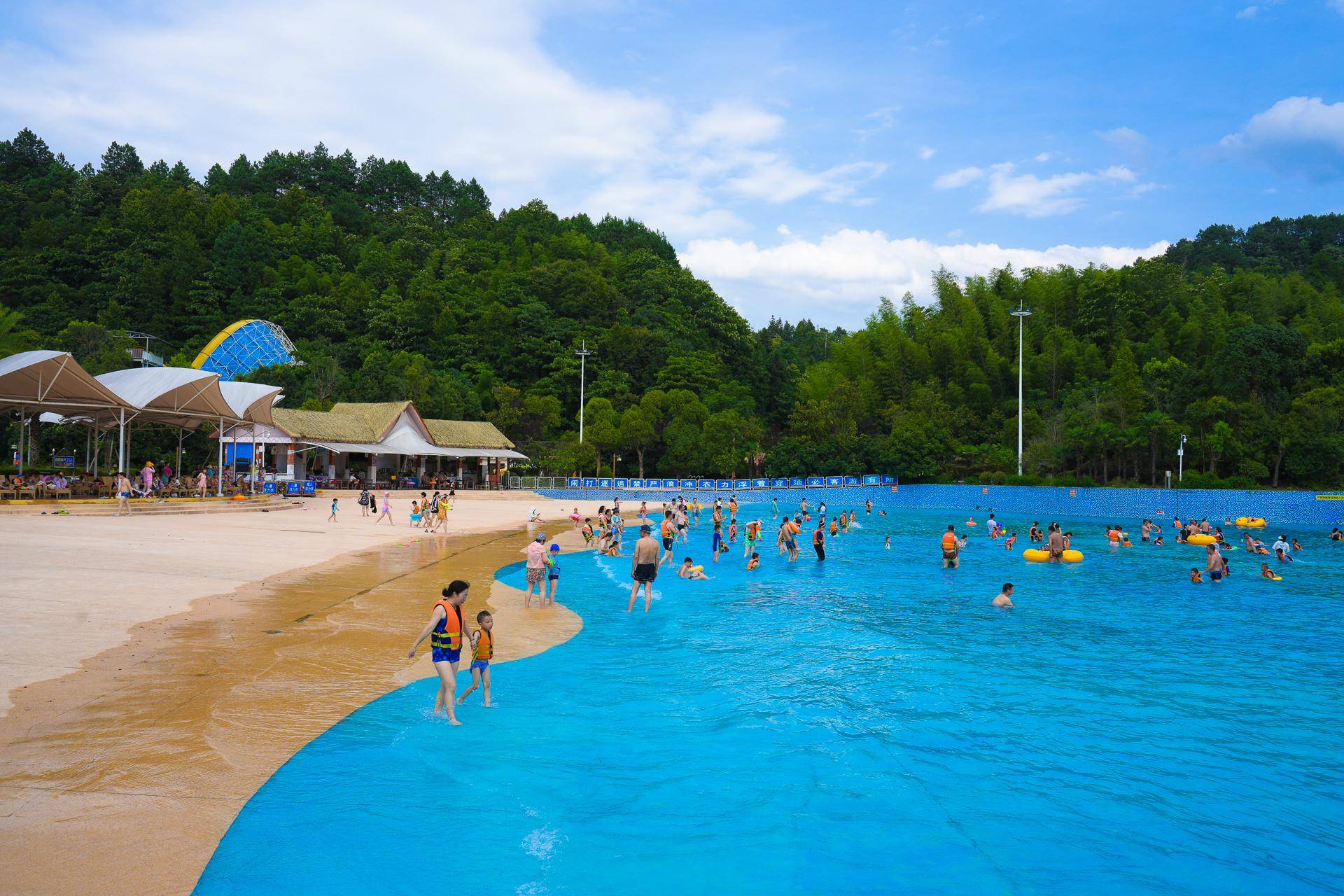 巨浪谷:这是最热闹的好玩项目,人山人海,家长带着孩子,大人老少都最喜欢这里玩水,随着高高的波浪袭来,一朵朵的浪花飞快地朝岸边涌过来,在这里感受一下大海的浪,是最推荐的一个项目。