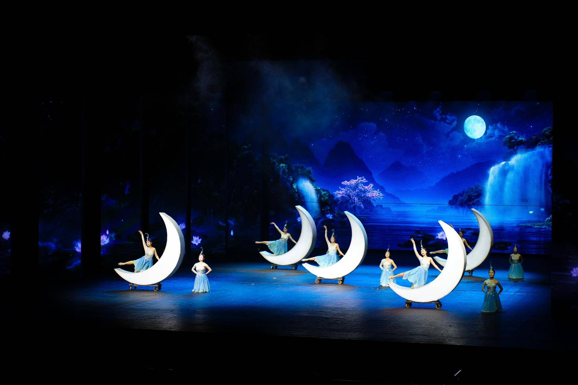 这里有嫦娥与后羿相守相望的天地之情,有荡气回肠的红色赞歌,特别是红色文化那幕演出,视觉效果灯光配合得太好,把红色文化表现得淋漓尽致。赢得了在场掌声一片。恋一轮温柔的明月,寻一段浪漫的邂逅。