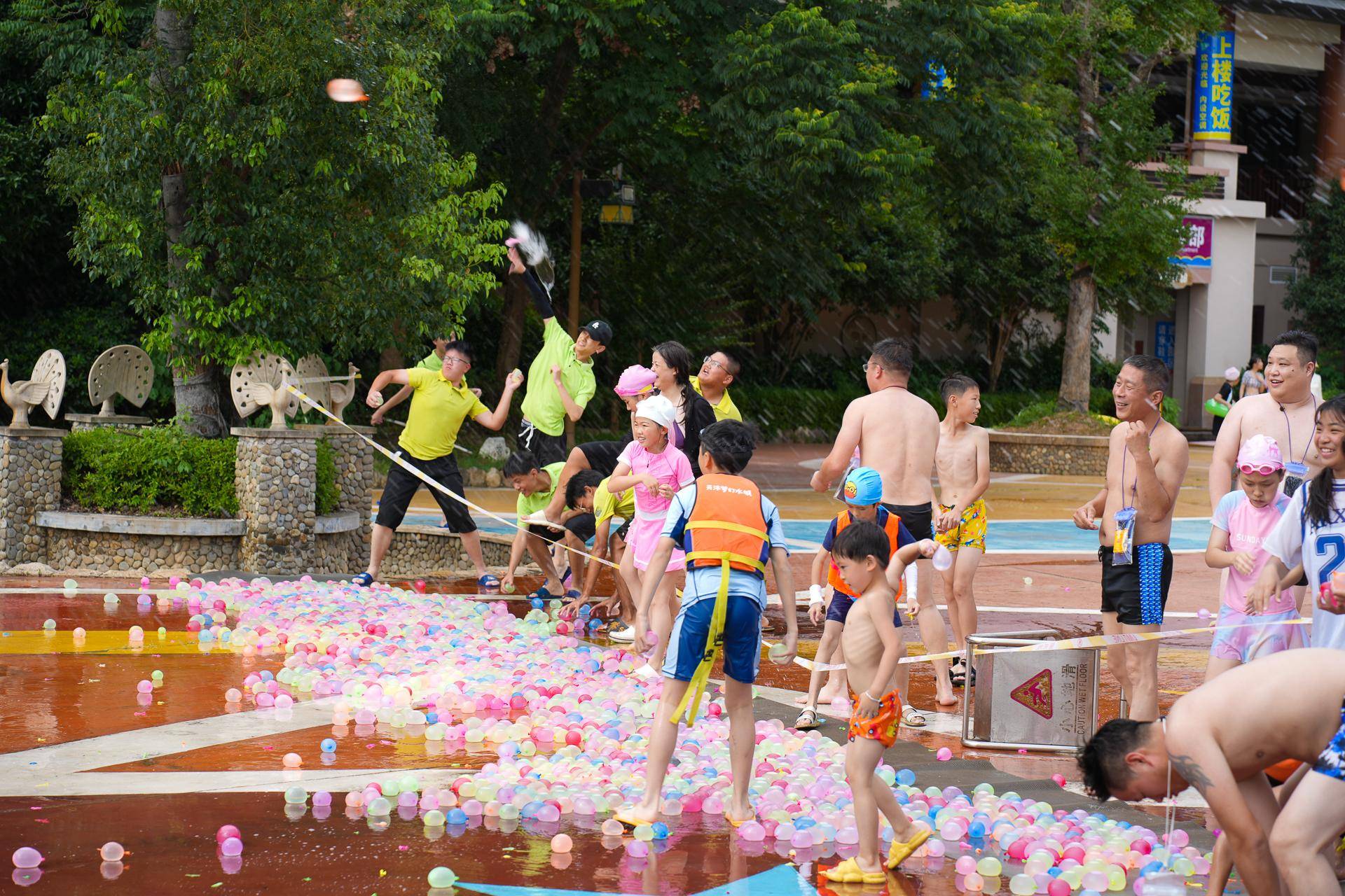 水球大战,一触即发,一颗颗色彩斑斓的水球,在这个夏季极致绽放。大家都迫不及待地等着开始, 上万颗水球蓄势待发。来到了打水球开始的时间,游客分成了两边,接着就是开始一场夏日水球之战,水球在手臂力量的助推下形成了完美的弧线成功的击中目标,四溅的水,注定成了这个夏季最漂亮的花。