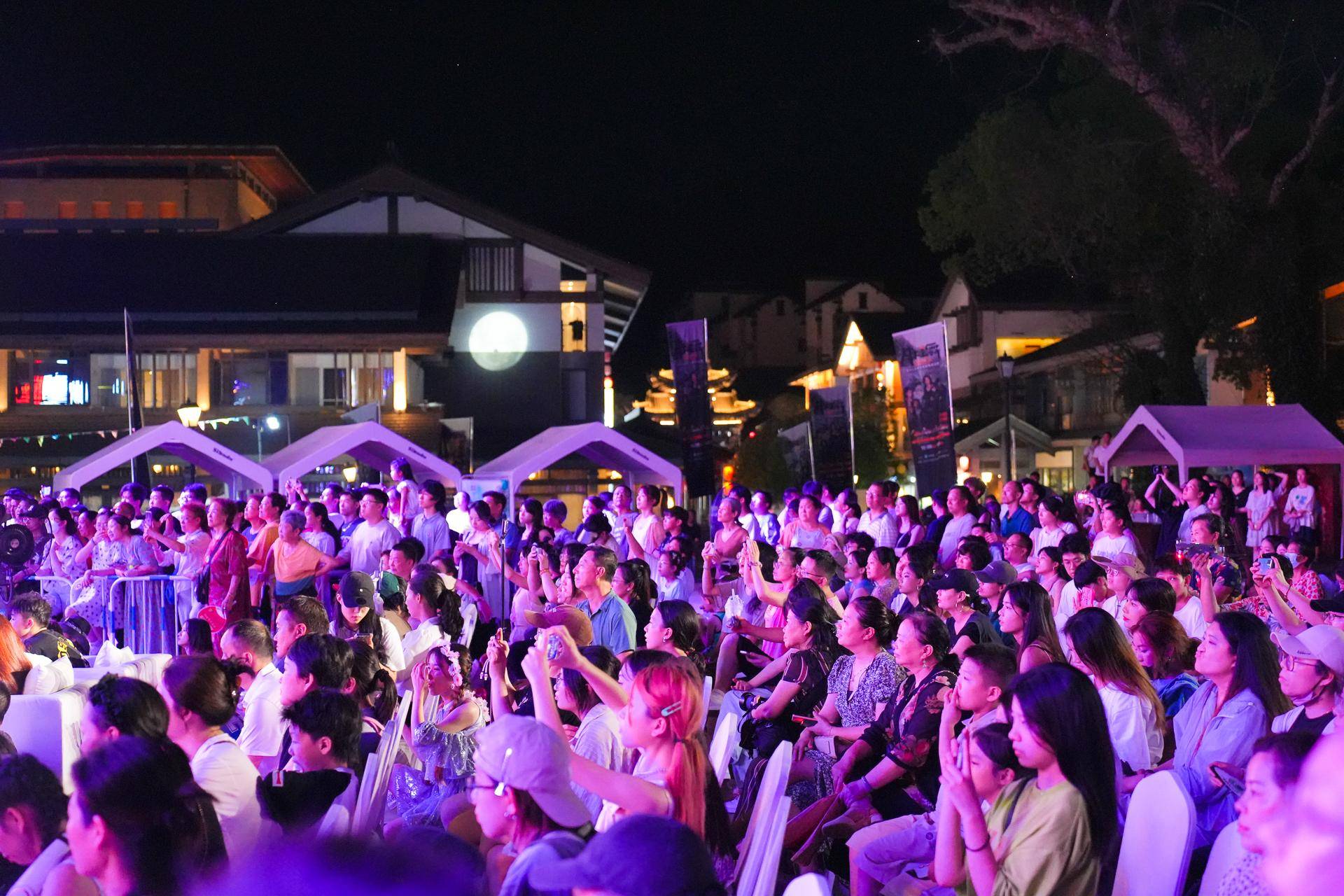 夜幕降临,华灯初上,属于明月千古情景区的狂欢之夜正式上演。夏日还增加了不少新节目,看完千古情演出后走到月亮湖畔欣赏燥浪电音秀,精彩的演出,酷炫的灯光。在月亮湖浪漫沙滩之上,音浪狂欢夜持续high翻全场,在绚丽的光影和动感的旋律下,人群挥舞着手中的荧光棒,释放真实的自己。