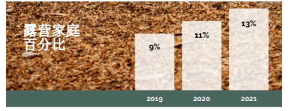 在疫情之前,无论是从积极参与露营的家庭数量还是从人们每年花在露营上的时间来看,露营旅行已经在逐年稳步增长。然而,在过去两年里,疫情极大地影响了露营和户外娱乐活动。自新冠肺炎疫情爆发以来,露营和豪华露营正以更快的速度成为旅游文化的一部分。截至2021年,70%的家庭(9380万)认为自己至少是偶尔露营者或爱好者。