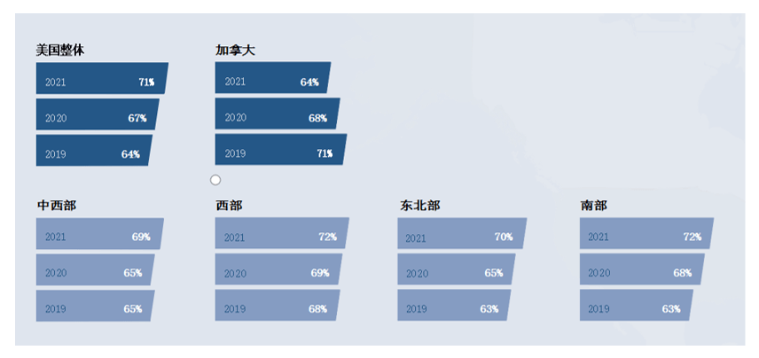 图2 2019-2021年按区域划分的露营发生率