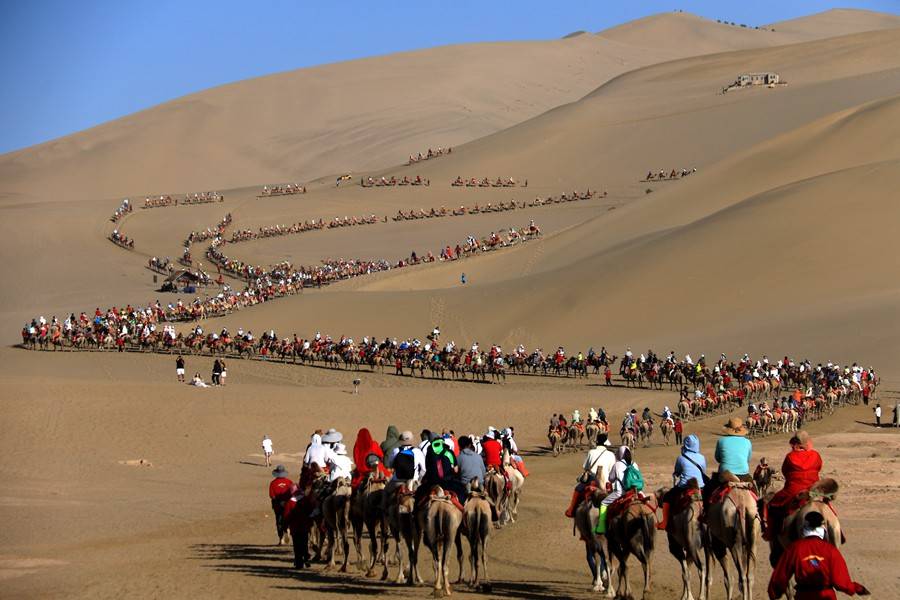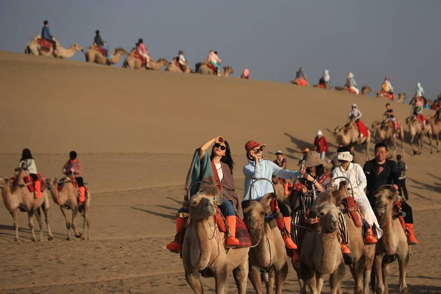 原标题:甘肃敦煌:丝路驼铃响 “暑期档”旅游持续升温
