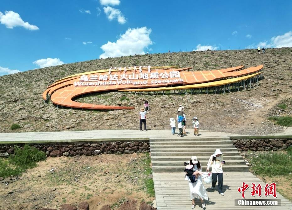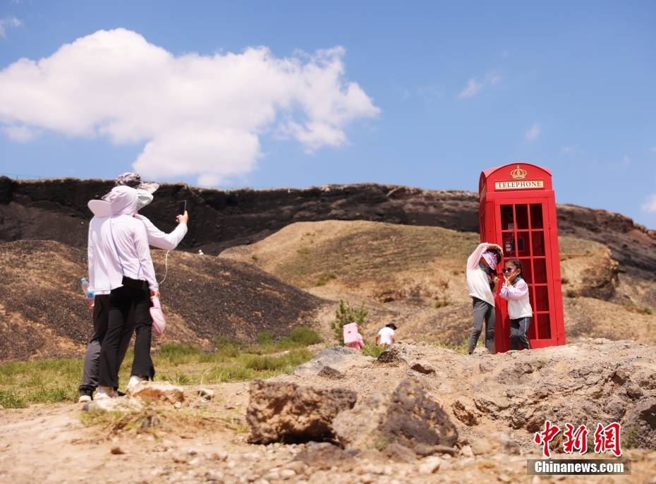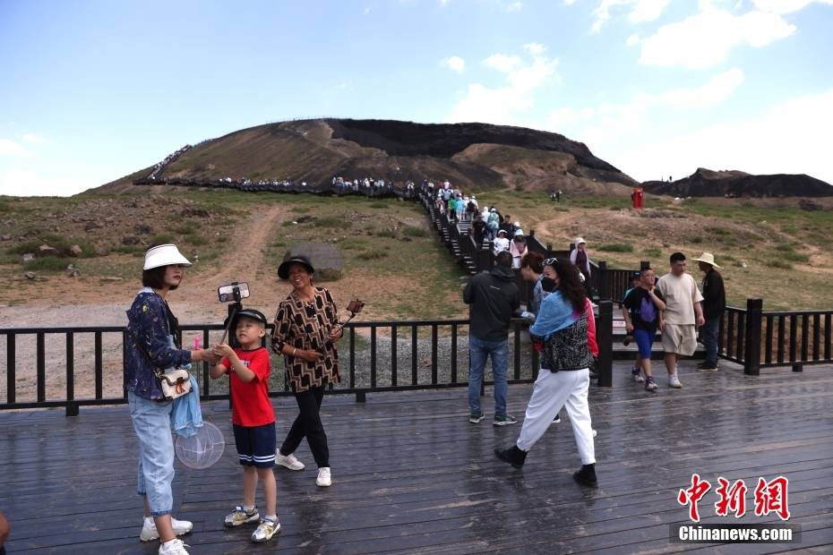 游客在乌兰哈达火山群3号火山游玩。中新社记者 赵隽 摄