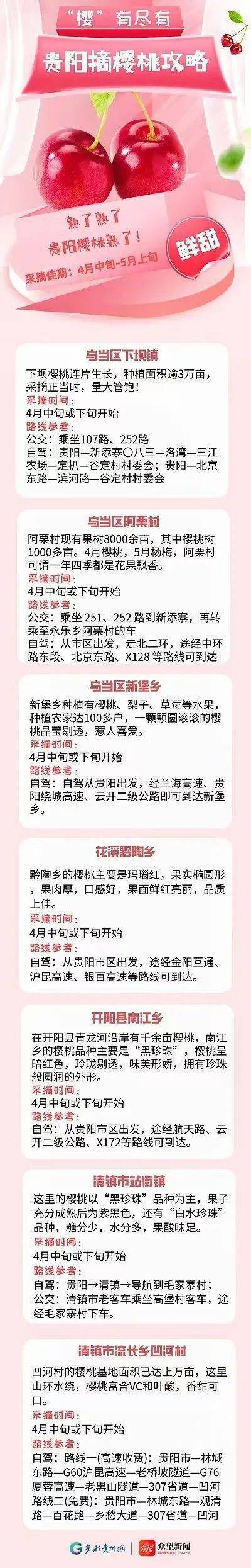 这个春天如何实现“樱桃自由”?4月中旬,贵阳周边樱桃将陆续成熟,一起来看看有哪些采摘樱桃的好地方。