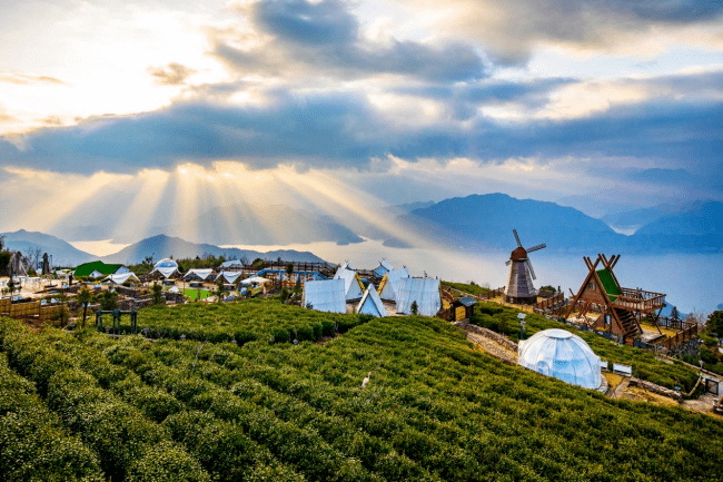 天空之城是位于浙江省景宁畲族自治县的一个美丽小镇,被誉为“中国最美的小镇之一”。景宁天空之城位于海拔1400米的高山上,四周群山环抱,空气清新,景色怡人,是度假休闲的绝佳去处。镇上的建筑风格独具特色,以木结构为主,融合了苗、侗、水等多个少数民族的建筑风格,形成了独特的“畲族生态建筑风格”。景宁天空之城拥有丰富的旅游资源吸引了大量游客前来旅游观光。