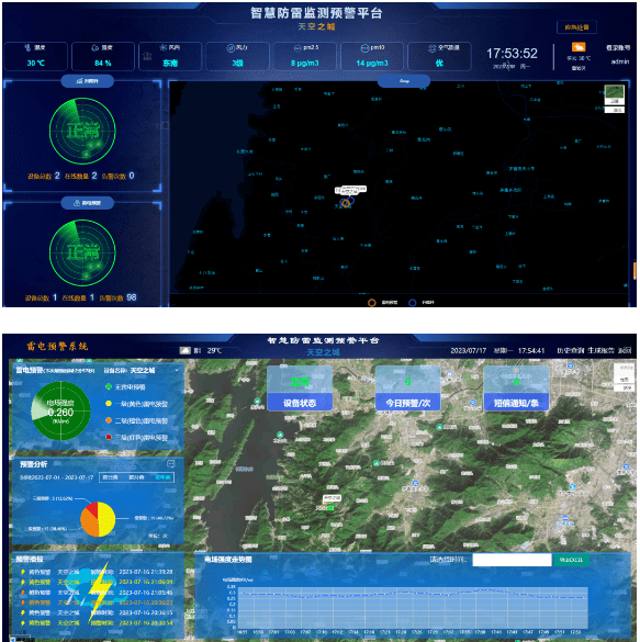 为加强重点景区保护工作,减少雷电灾害造成的损失,我司根据天空之城景区的地形和建筑物特性,安装了1套雷电预警系统和2台智能升降式接闪杆。雷电预警设备能够实时、安全、可靠地监测雷雨云的大气电场数据,提前约30分钟以短信形式通知管理人员,同时发送升杆指令给升降式接闪杆控制箱,升降式接闪杆接收指令升杆至预设高度,雷电预警解除后发送指令给升降式接闪杆控制箱,升降杆接收指令降杆到预设高度。真正做到雷电实时监控、升降杆控制系统自动管理,减少直击雷对建筑物本体和人员的伤害,切实提高文物建筑雷电防御能力。