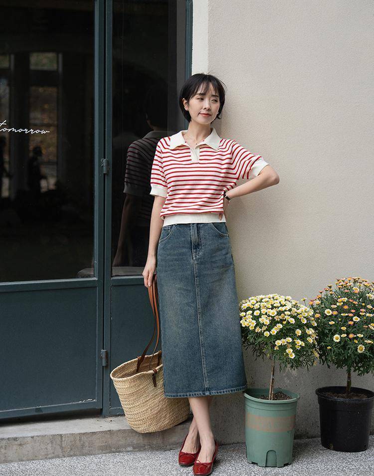 搭配高跟鞋或高跟鞋,打造轻松优雅的造型。另外,牛仔裙还可以搭配各种流行单品,比如各种时尚元素的夹克、T恤,也能穿出自己的个性。