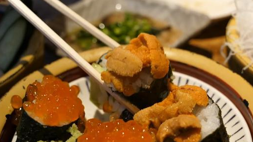 这个是鱼子酱寿司,味道确实挺好的。