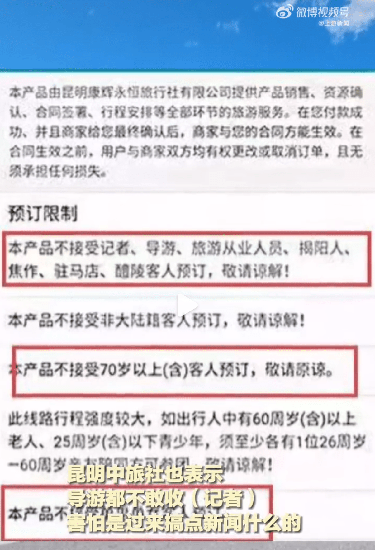 原标题:云南多家旅行社禁止记者律师参团:不收“敏感行业”客户