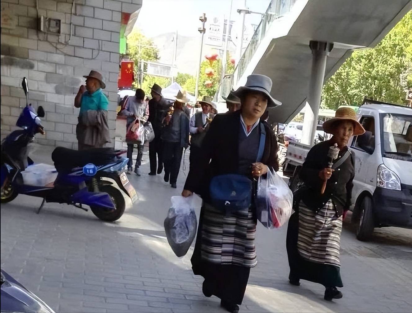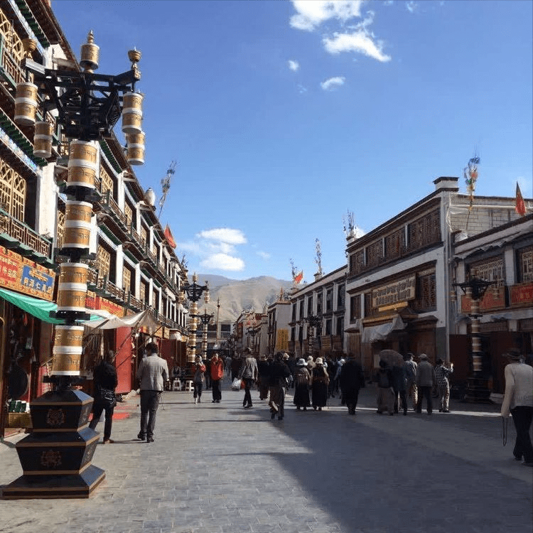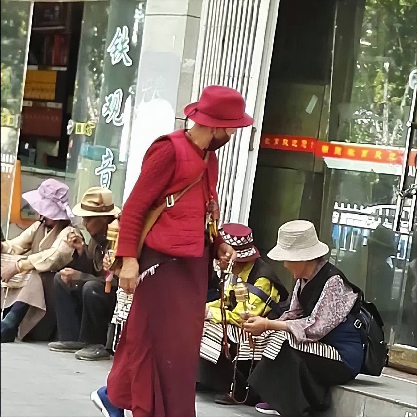 刚出宾馆不远,竟不经意间走进了市中心的八廓街。这条街,可谓大名鼎鼎,一直是颇具高原风情的历史名街。放眼望去,除了偶尔路过的穿红衣的喇嘛,穿藏衣的手拿转筒的老人之外,其他与内地的商业街没有多大区别。店铺宻布,人声嘈杂,现代化的商品琳琅满目。看得出在商业化的大潮中,拉萨也没有例外。