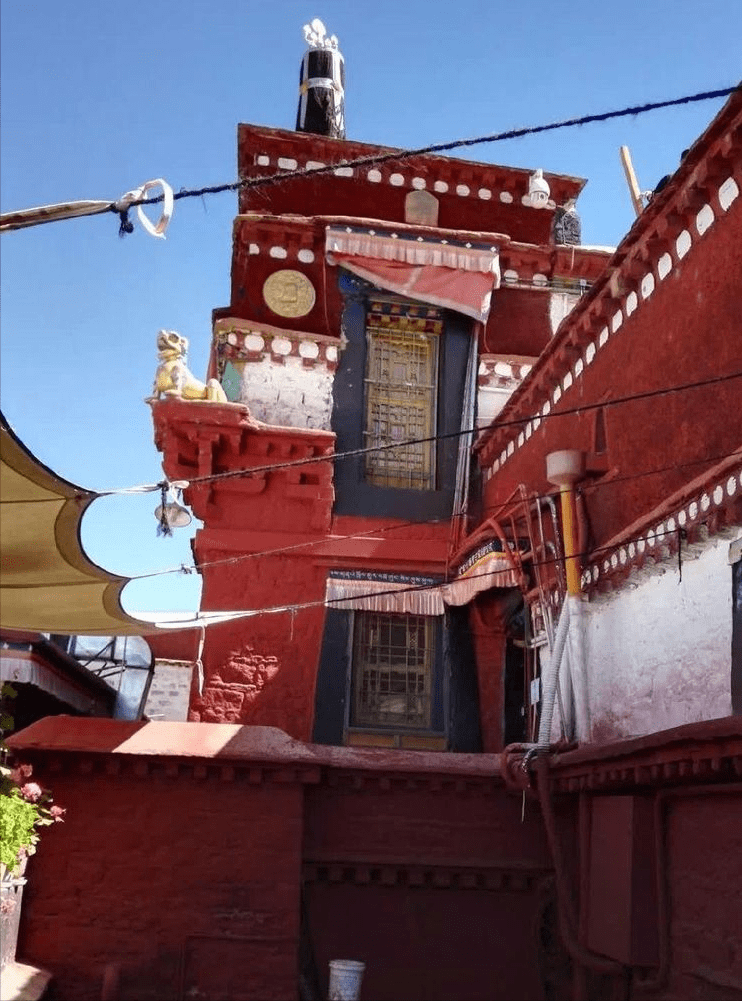 寺院不大,殿堂一通到底,有供奉的佛像,还有佛事活动。墙上有壁画,唐卡,酥油灯,屋外的走廊上有两排转筒。除了这些,我就什么也不懂,只好随人流而进又随人流而出。
