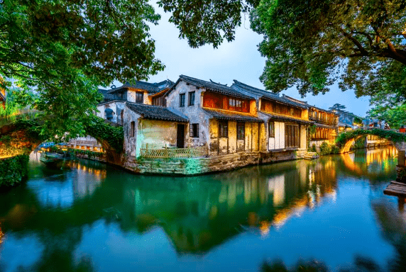 苏州周庄古镇:苏州周庄古镇是中国著名的水乡古镇之一,有着悠久的历史和独特的文化。这里有许多古建筑和水乡景观,如双桥、沈厅、张厅等,可以让游客感受到江南水乡的独特风情。