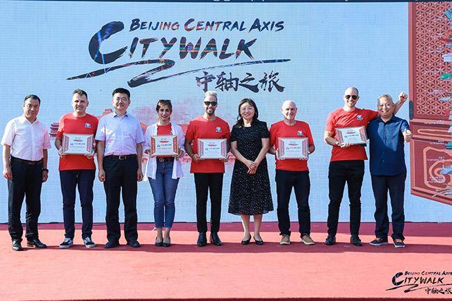 北京市文化和旅游局一级巡视员庞微、北京市文物局副局长褚建好、北京时装周组委会执行主席贠天祥及北京古代建筑博物馆馆长薛俭为5位外国嘉宾颁发“长城好汉”证书。