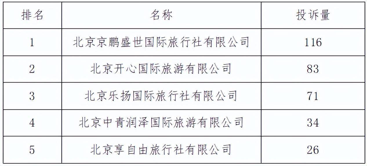 旅行社投诉排名TOP5