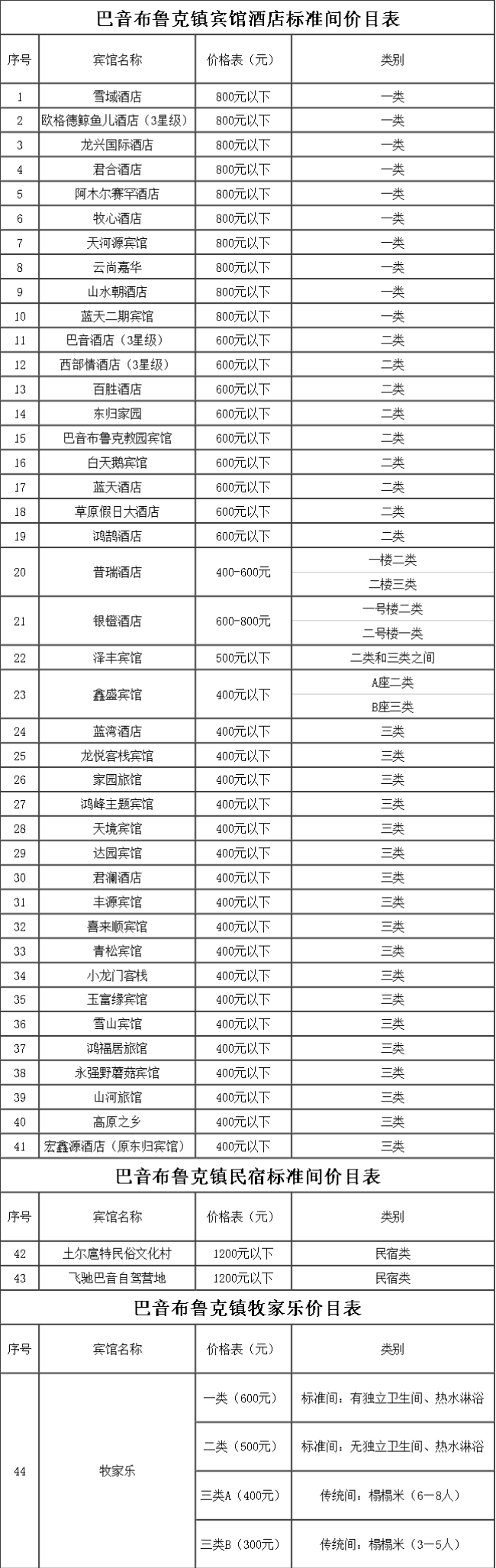 巴音郭楞蒙古自治州和静县巴音布鲁克镇对住宿业市场执行分类最高限价。