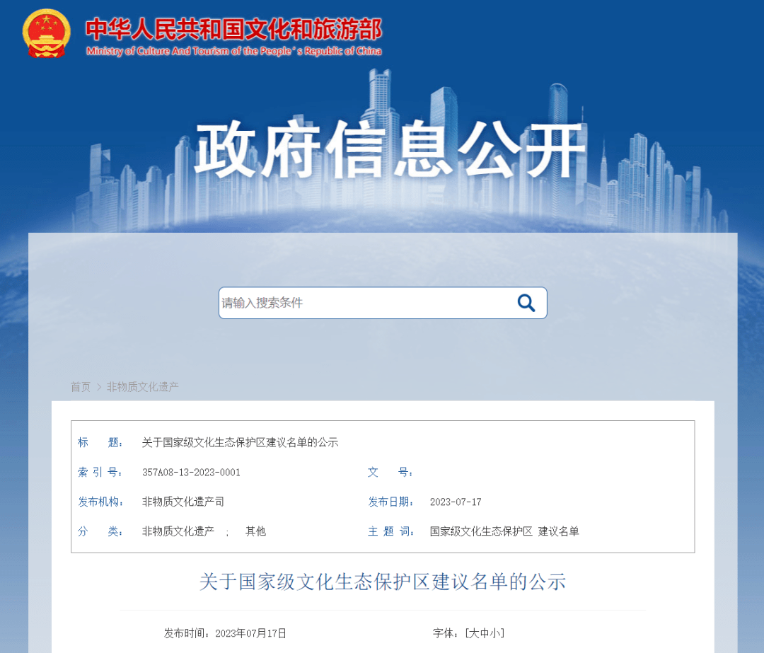 文化和旅游部公示国家级文化生态保护区建议名单