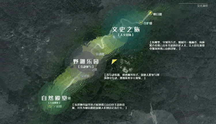 据介绍,九峰阳台项目包含“文史之旅”“野趣乐园”“自然殿堂”三个主题部分。其中“文史之旅”以雕塑、字刻等方式,如展开一幅画卷,向游客介绍缙云山及北碚的历史人文,让人们在游览中加深对缙云山的印象。“野趣乐园”以互动装置、科普廊等形式,鼓励人群参与场地互动,增加游客多元体验。“自然殿堂”以景观小品等形式展现缙云山自身丰富的资源,并作为最远路程鼓励人们到达纪念打卡。