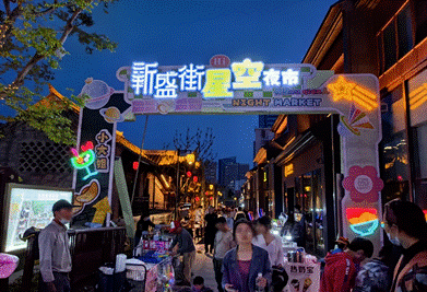 当夜幕降临,新盛街星空夜市被夏日夜晚的人气笼罩。璀璨的灯火,琳琅满目的灯光,各种各样的小吃,来这里可以领略到老街散发出的时代潮流气息,感受现代和古典的融合。
