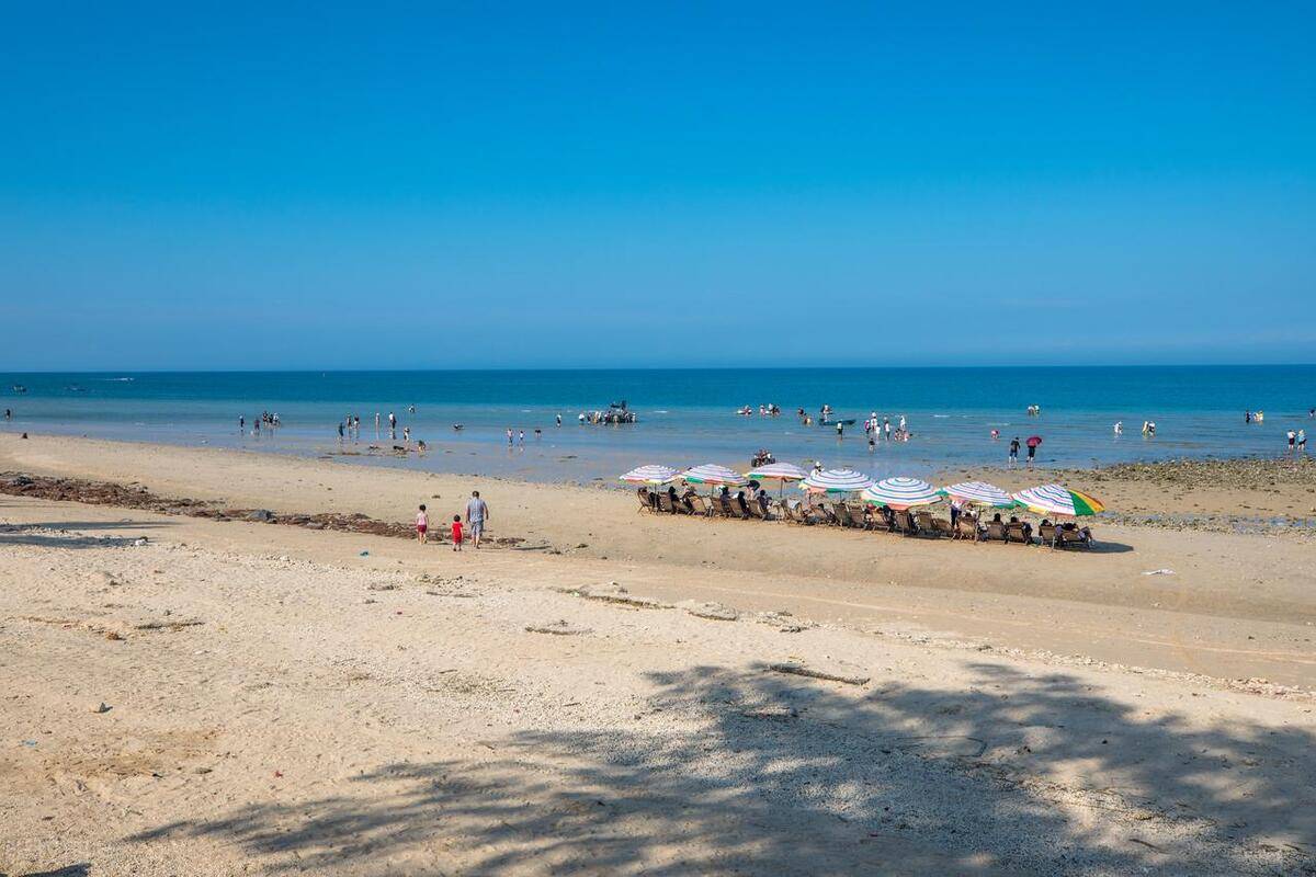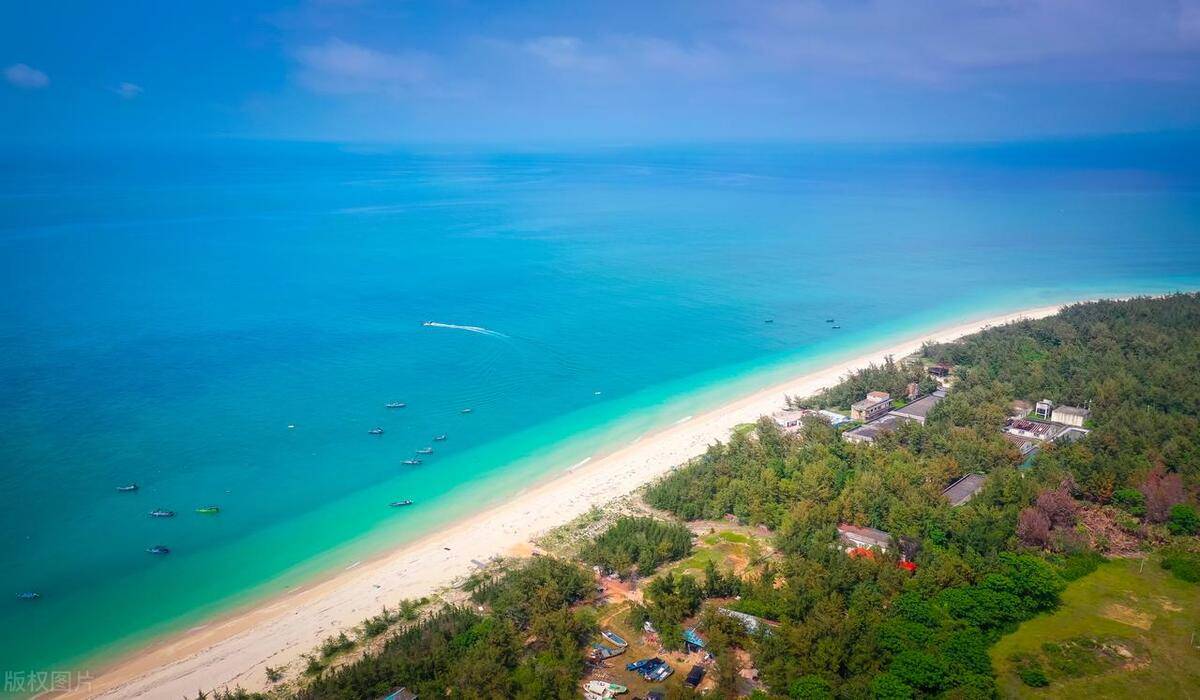 夏季是游玩贝壳沙滩的绝佳时节,海水晶莹剔透,随深浅变化呈现不同的色彩,如同一块绚烂的玻璃宝石美不胜收。