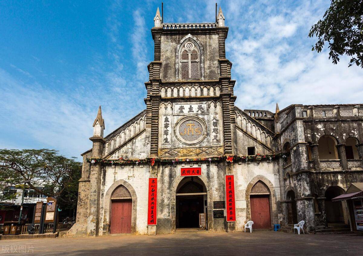 盛塘天主教堂是涠洲岛上必看的建筑,这栋哥特式建筑,几乎全部取材于岛上的珊瑚石、岩石等,历经一百多年的风雨,斑驳痕迹叙说百年历史。教堂掩映在一片绿影婆娑的芭蕉林和菠萝蜜树林中,是清末"雷廉"地区一座最为宏伟的教堂。