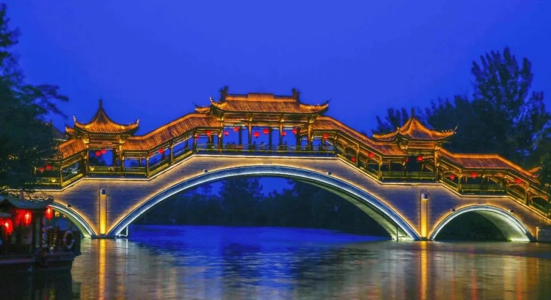 行走在古色古香的街巷,火红的红灯笼自屋顶垂下,跟随着晚间的微风轻轻摇晃,联排的小店亮起招牌,香气蔓延萦绕街巷,明清时候“商贾迤逦,一河渔火,歌声十里,夜不罢市”的古城繁华重现眼前。