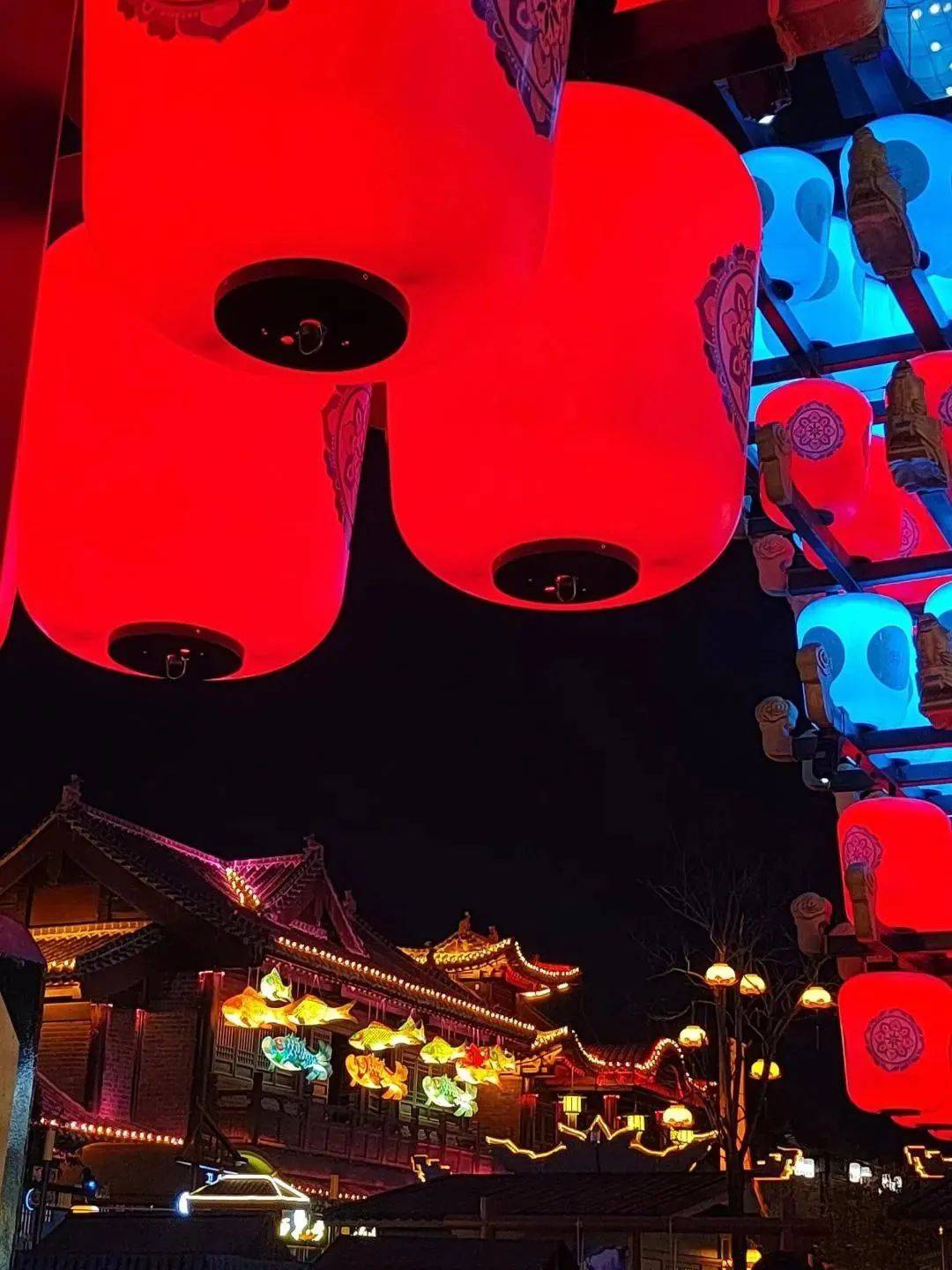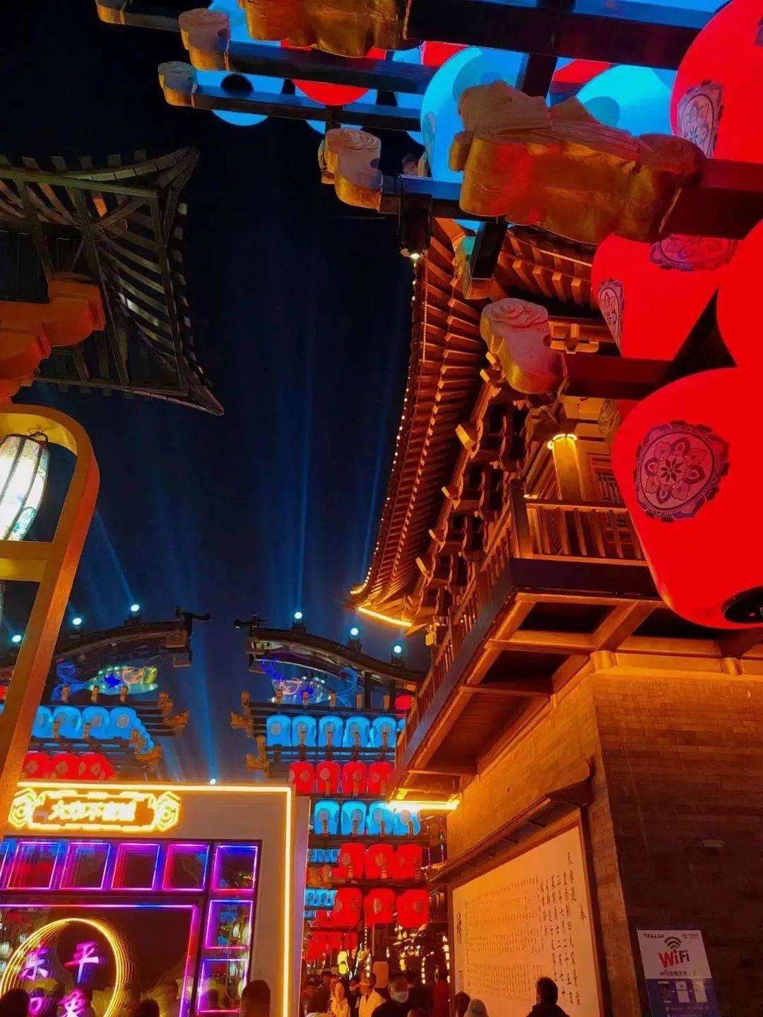 入夜时,81座牌楼灯塔、400处氛围灯墙、3000盏光束激光灯、2万余个国风灯笼齐齐亮起,带你梦回繁华盛唐。