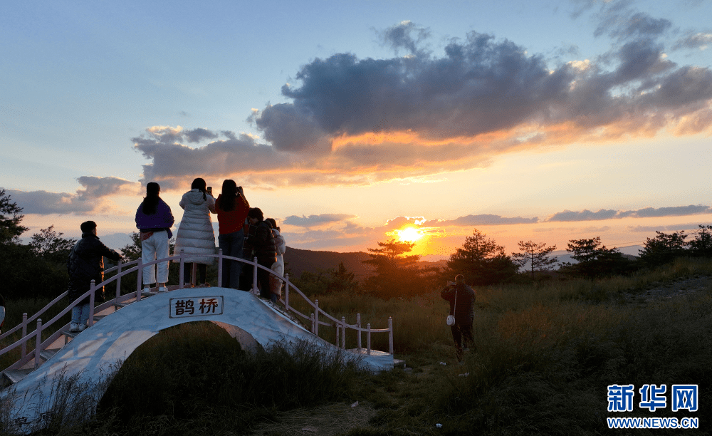7月16日,游人在巴山大草原观赏日出。新华网发(张岚 摄)