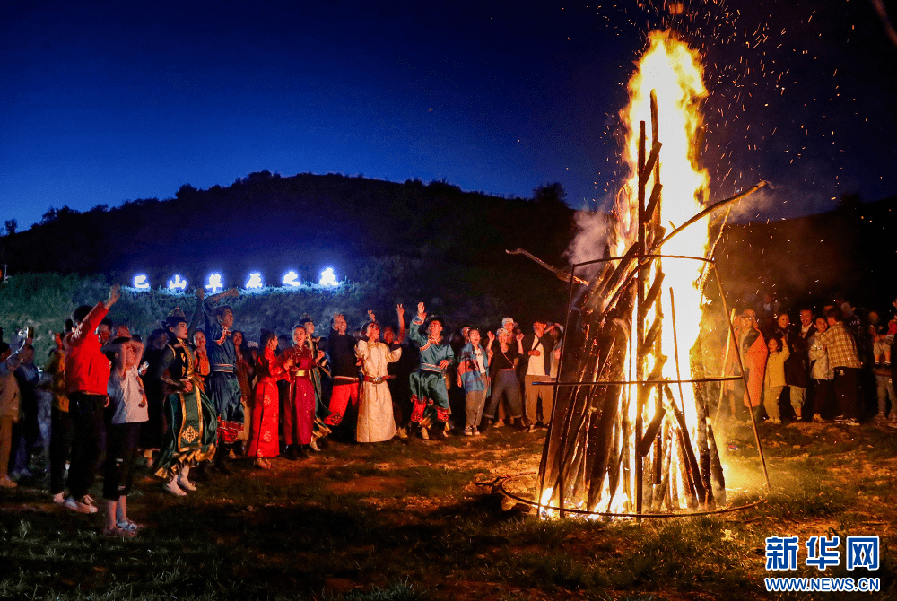7月15日,游人在巴山大草原参与篝火晚会。新华网发(赵哓罡 摄)