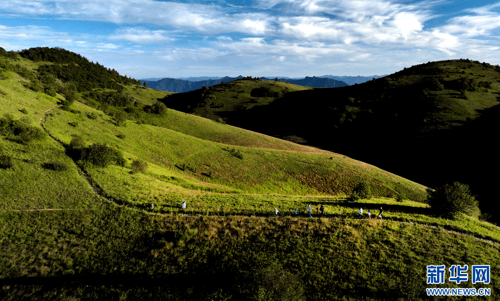 7月15日,游人在巴山大草原行走、游玩。新华网发(张岚 摄)