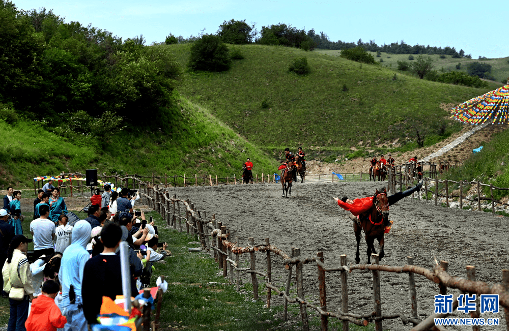 7月15日,游人在巴山大草原观赏马术表演。新华网发(张岚 摄)