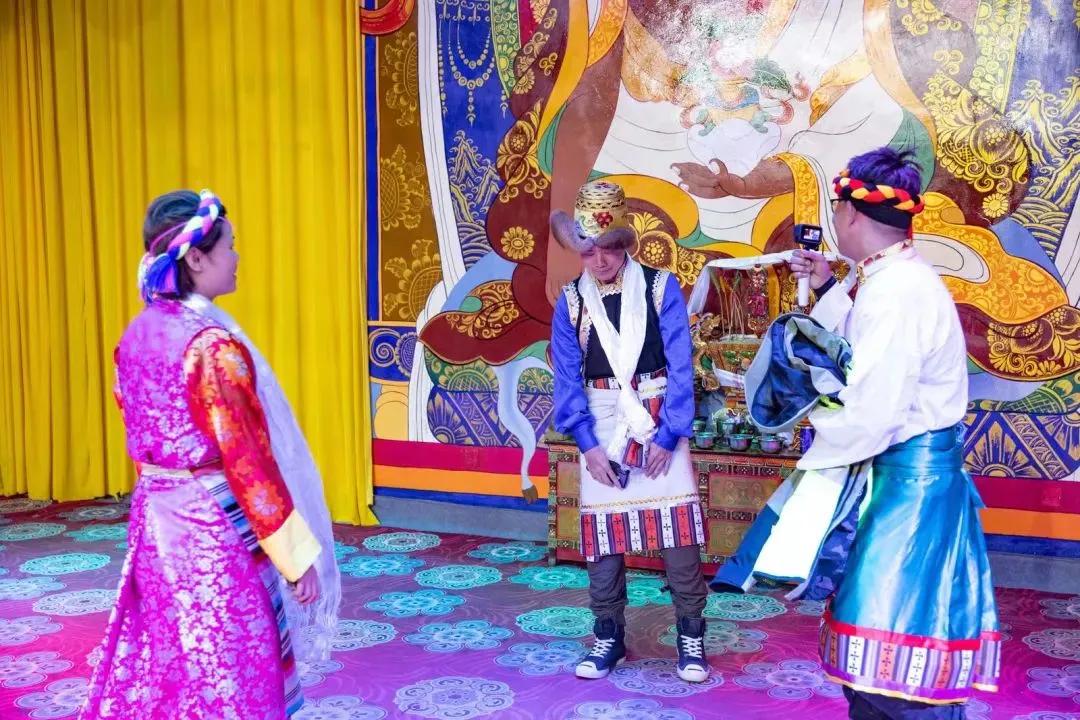 傍晚我们来到藏戏第一村扎西曲登,又被小姐姐献了哈达。