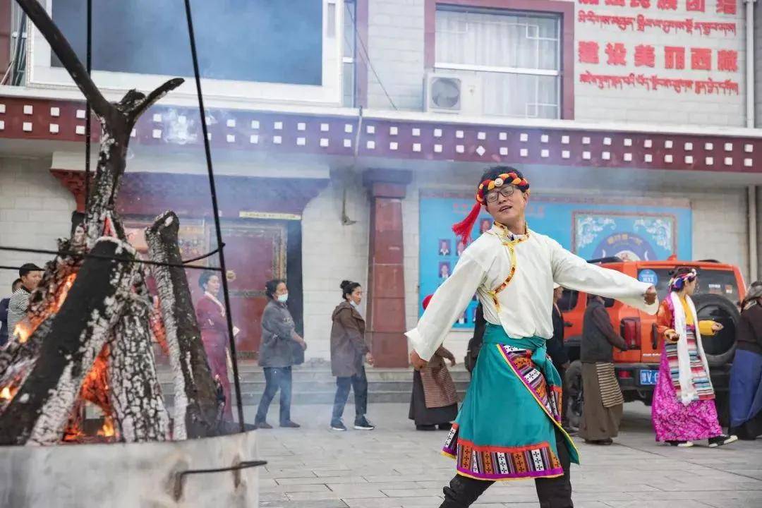 晚上也没闲着,我们一行人30块租了套藏装,和当地人一起在广场上跳大舞,我们围着篝火唱歌跳舞,每个人都很开心,这太棒了,在这个无限内卷的年代,成年人的快乐实在是一种奢侈品。
