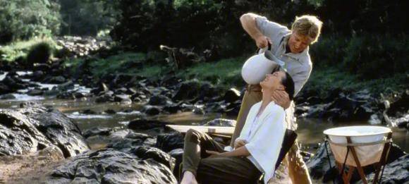 丹尼斯在荒野中从一头雄狮手中拯救卡伦,这是他们相识,重逢,互相倾慕,最后坠入爱河的开端。这一段,两位著名的演员,完美的合作,完美的演绎了出来,没有任何多余的语言。