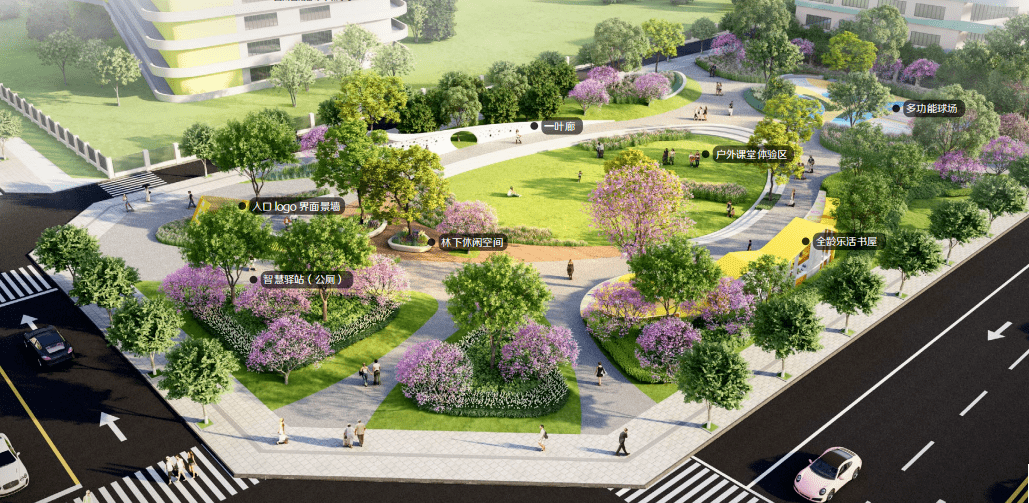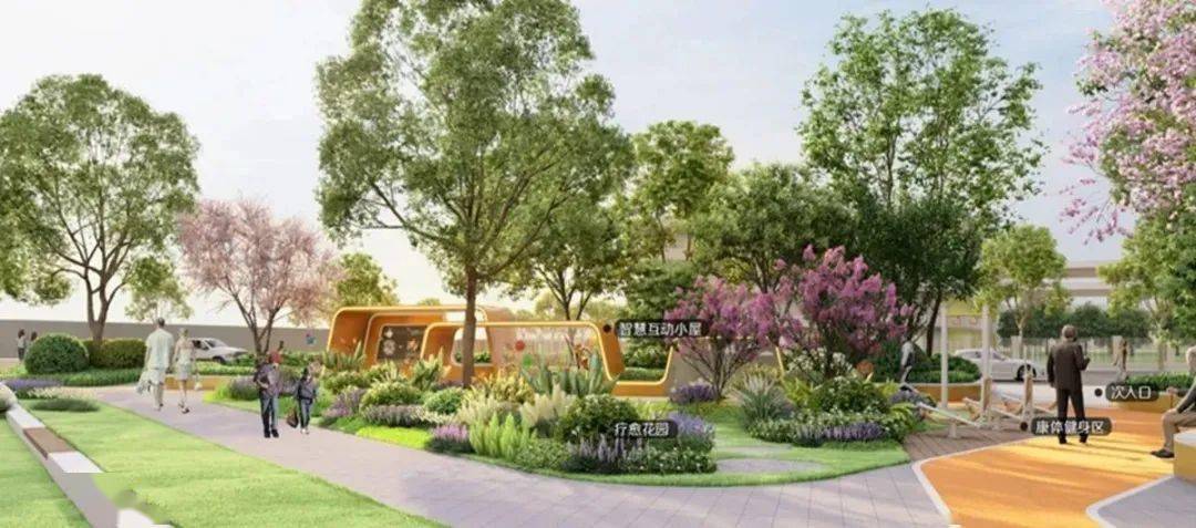 该项目主要满足老年人休闲交流、儿童上下学就近游玩需求。“治愈乐园”将打造以树林草地、大草坪空间为主的多功能活动空间,和绿色雅致的休闲游览空间。除了营造充满生机的生态氛围和开阔的活动平台外,还将呈现“ 童梦秋千乐园”“ 人文交互剧场”等特色节点,打造社区自然“医疗站”。