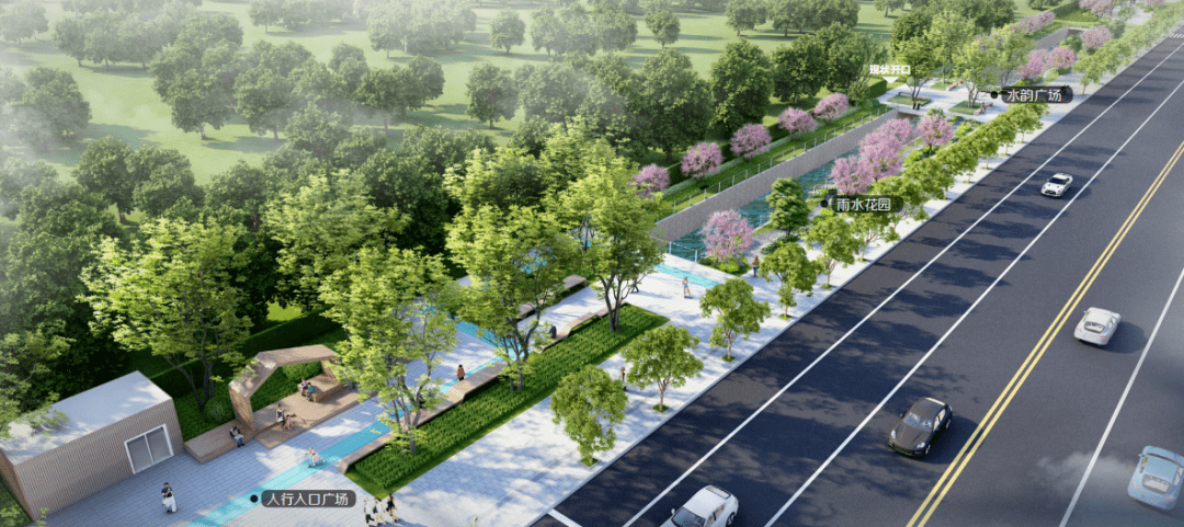 “ 水韵花园”将 在商业地段采用整型绿篱美化沿街展示面,河道地段以海绵城市理念打造街边雨水花园,为居民提供全新的滨水林下休闲点,进一步提升生活空间质量。