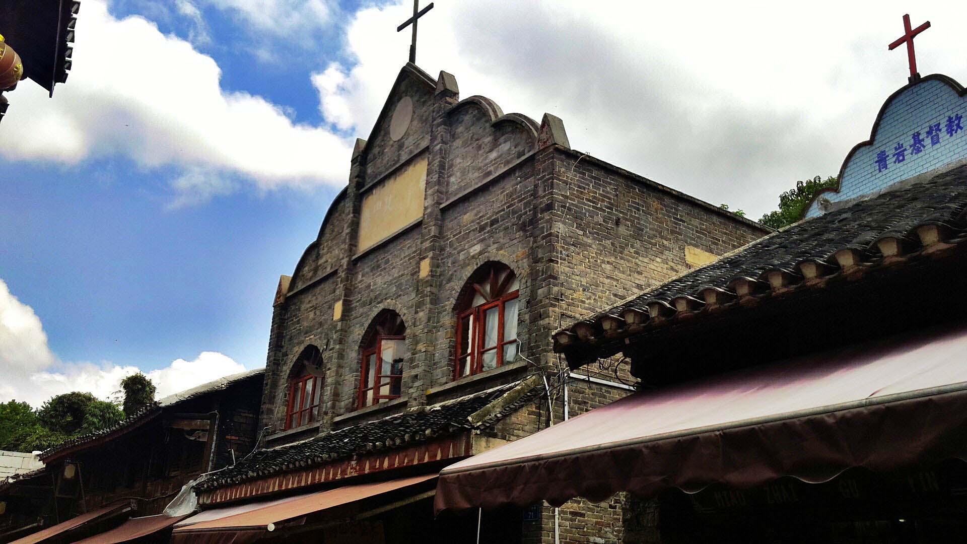 教堂,就说明着这个小镇并不封闭,在数百年前就已经开始容纳西方的文化和信仰,明清风格的宫阁寺庙和西方特色的教堂相映成趣。