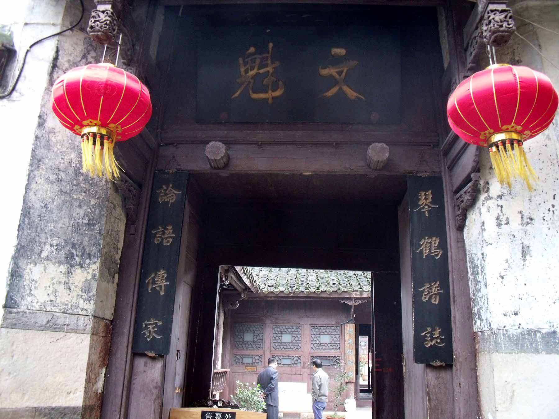 状元府门口并没有想象中的那样高大巍峨、气宇轩昂,却有一种小家碧玉的内秀。前面院门上挂着一块略泛金光的“文魁”匾,“文魁”二字至今悬于青岩赵府门上,这是贵州人的景仰和骄傲。两边挂着对联“琴鹤谱志,论语传家”。