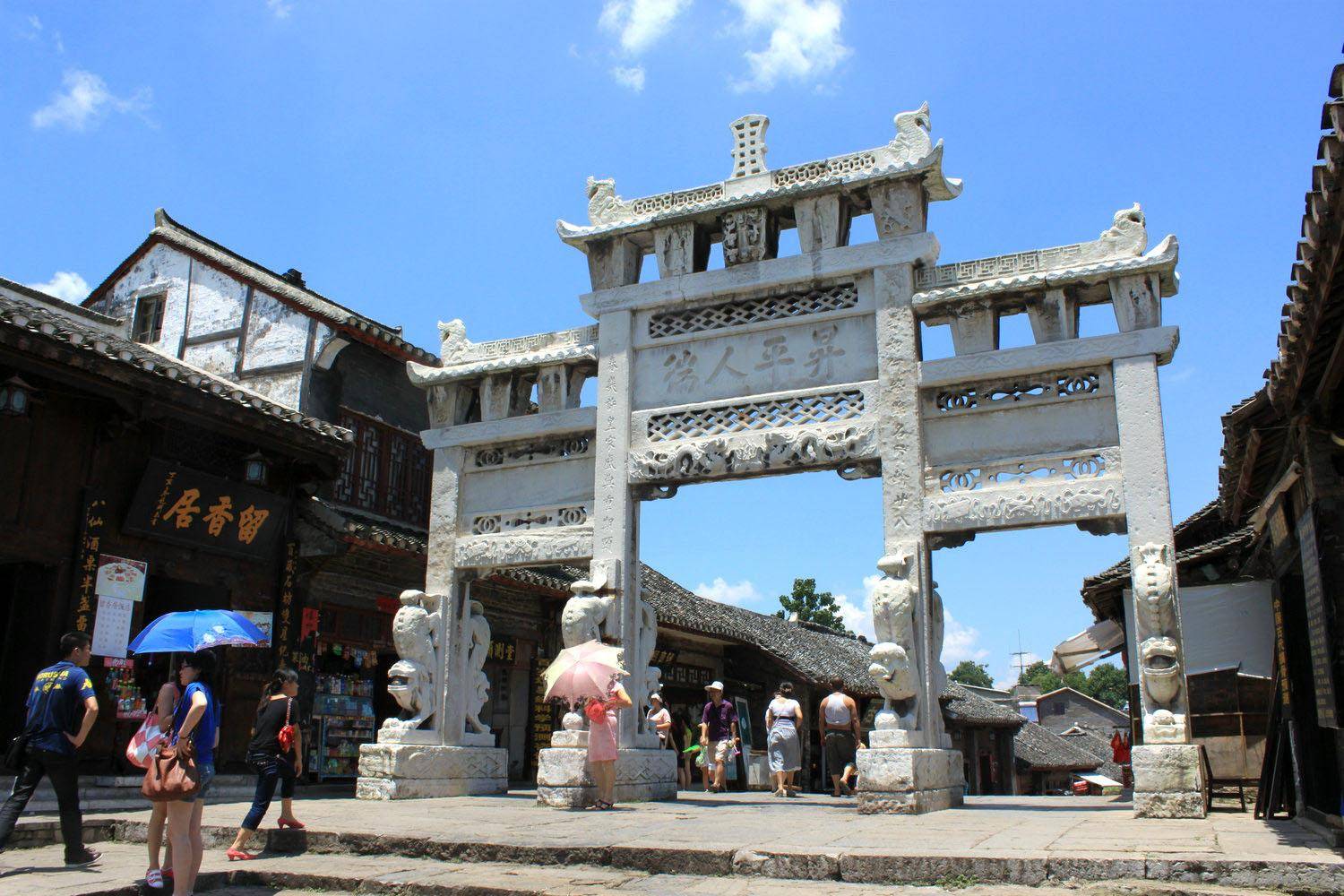伫立在定广门,依稀可见古城墙遗址残迹,使人联想到当年古镇作为军事要塞重兵屯集驻守的雄姿。望着城墙外起伏连绵、绿油油的稻田,脑子里浮现出姜文主演的电影《寻枪》中的画面。电影里叫卖牛肉粉的摊子就摆在这定广门城墙下,边陲小镇警察马山就是顺着这古镇里的4条正街、26条街巷开始着他的寻枪之路的……