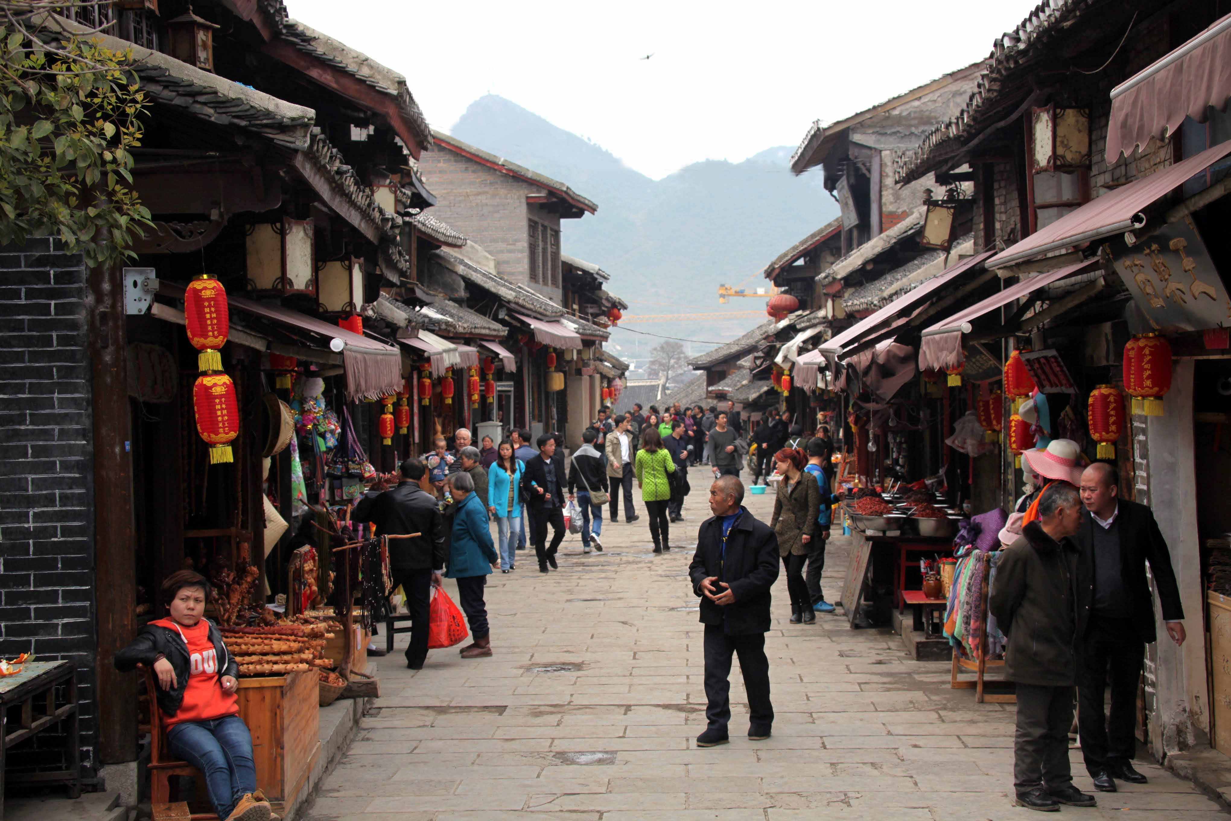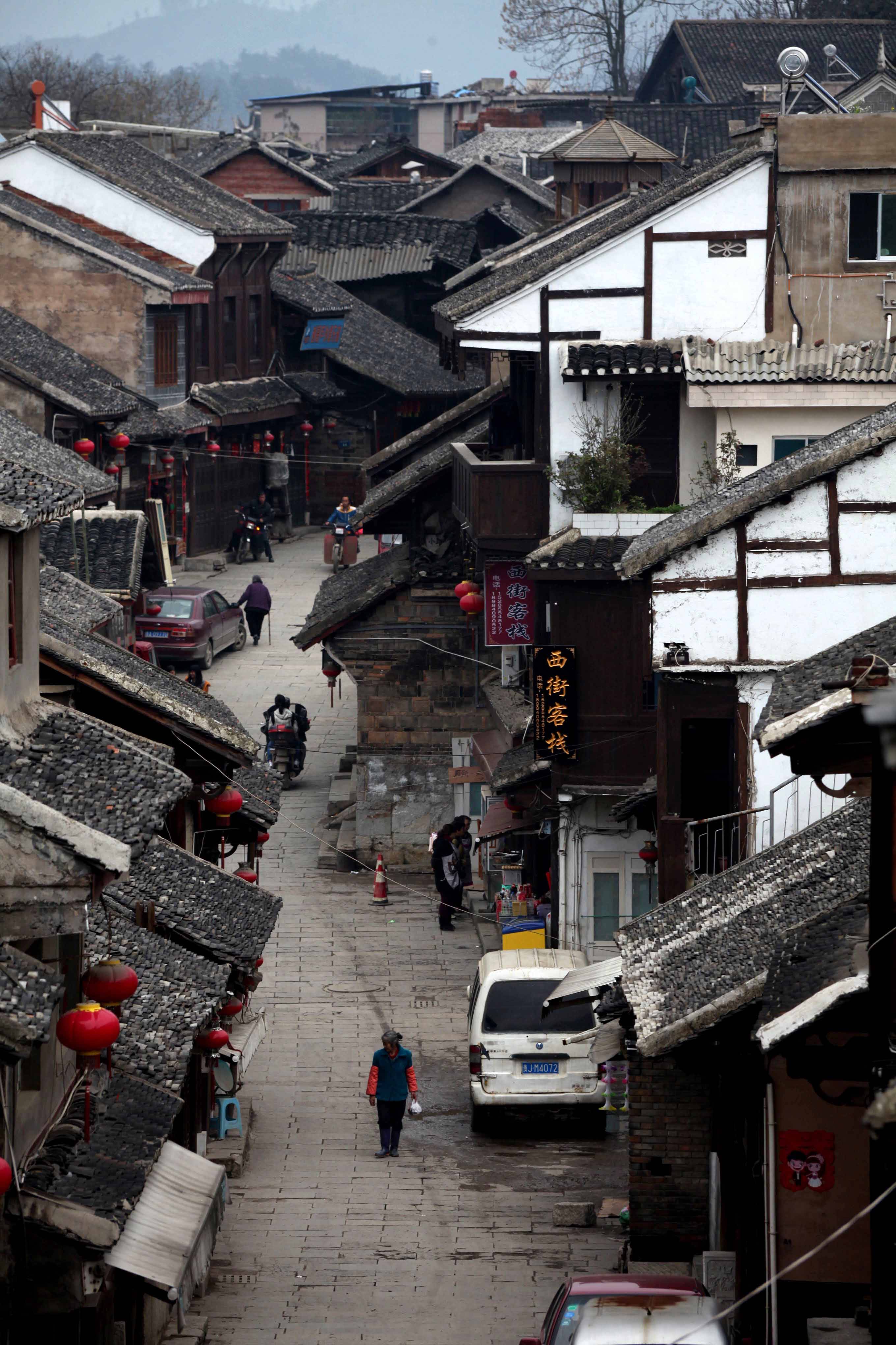 小巷人家的外围墙多用层岩砌成,泛着岩石点点白光的一溜院墙,在青石板路面的衬托下,弯弯曲曲地伸向远方。老街两边店铺林立,卖货人或热情地吆喝,或呷茶打盹,怡然自得,日复一日地过着属于自己的生活。