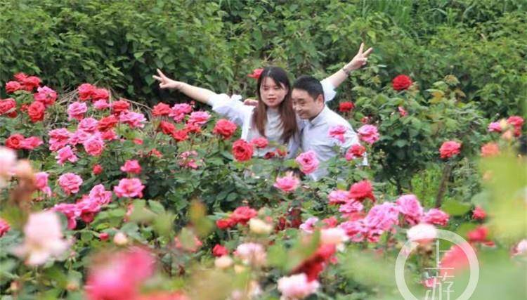 6月13日,沙坪坝区中梁市新发村乡村党支书唐仕川,3000m的“玫瑰花海”主人讨论了天气,因为天气影响他们是否新、晴朗是否影响他们周末的游客数量,以及村民的收入。“玫瑰花海”。