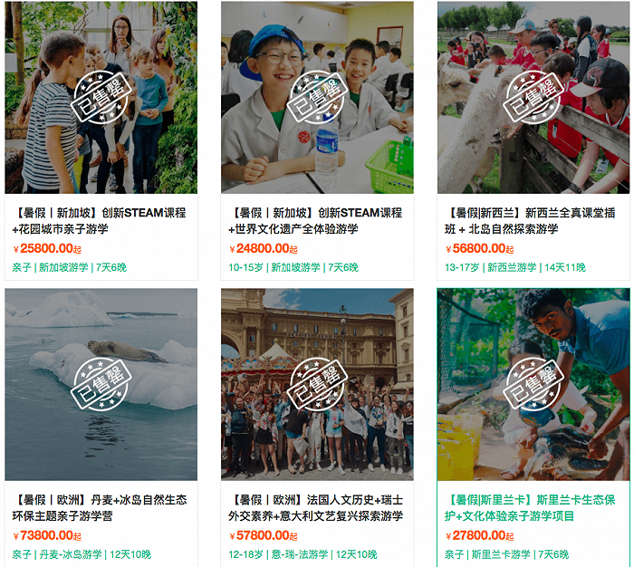 界面教育在多家平台搜索发现,境外游学产品基本在两万到八万元不等,周期在一至三周左右。